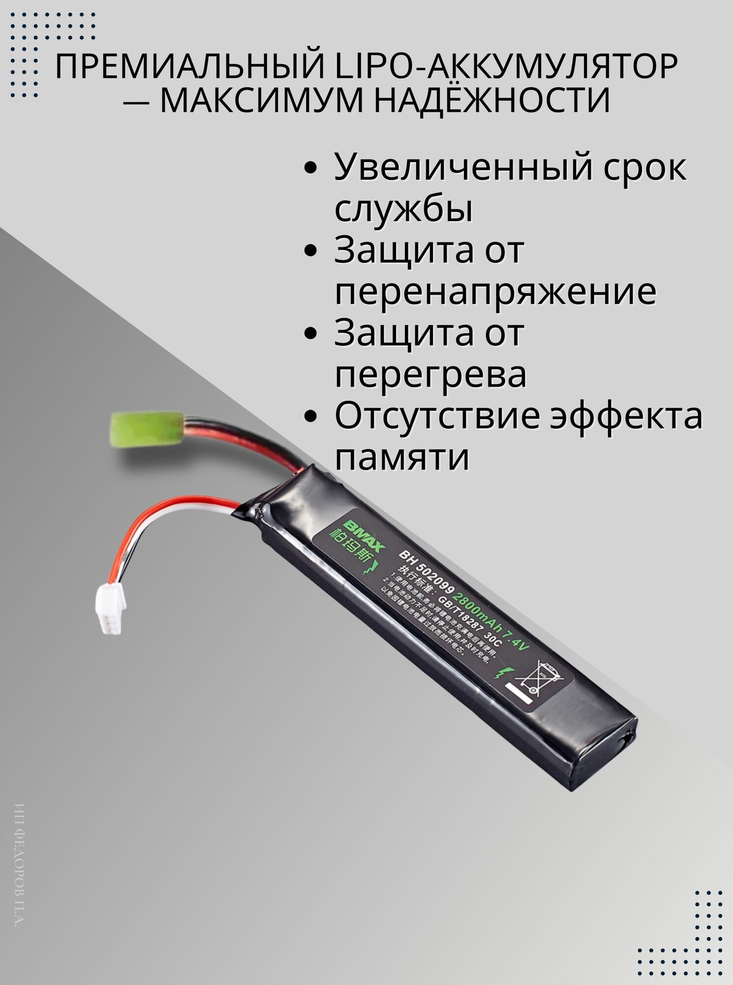 Отзывы на Bmax Аккумулятор для страйкбольного оружия (привода), Li-Рo, 7.4 В, 2800 мАч, Mini Tamiya