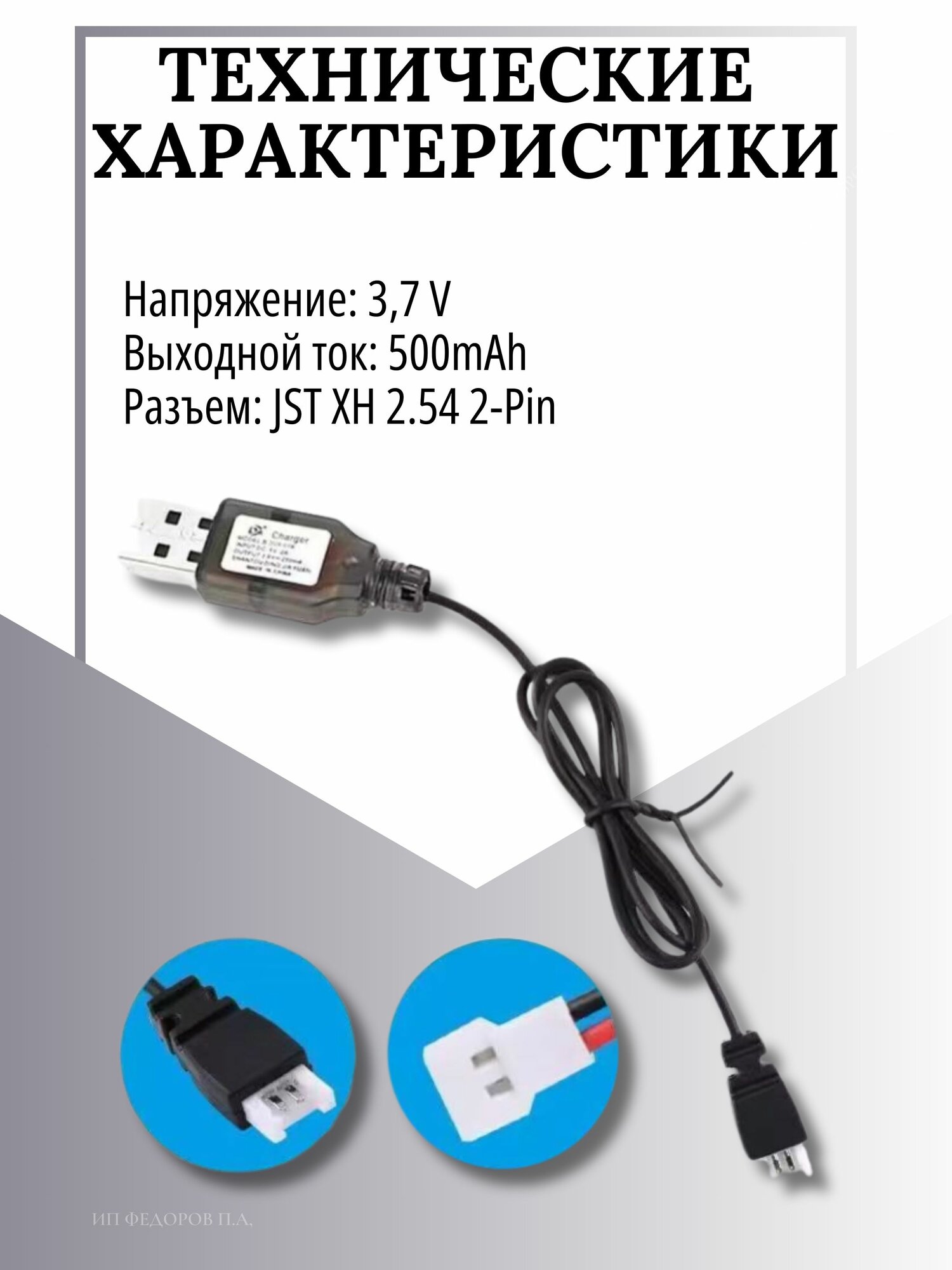 Зарядное устройство для аккумуляторов USB 3.7V, разъём JST XH 2.54 2pin информация: