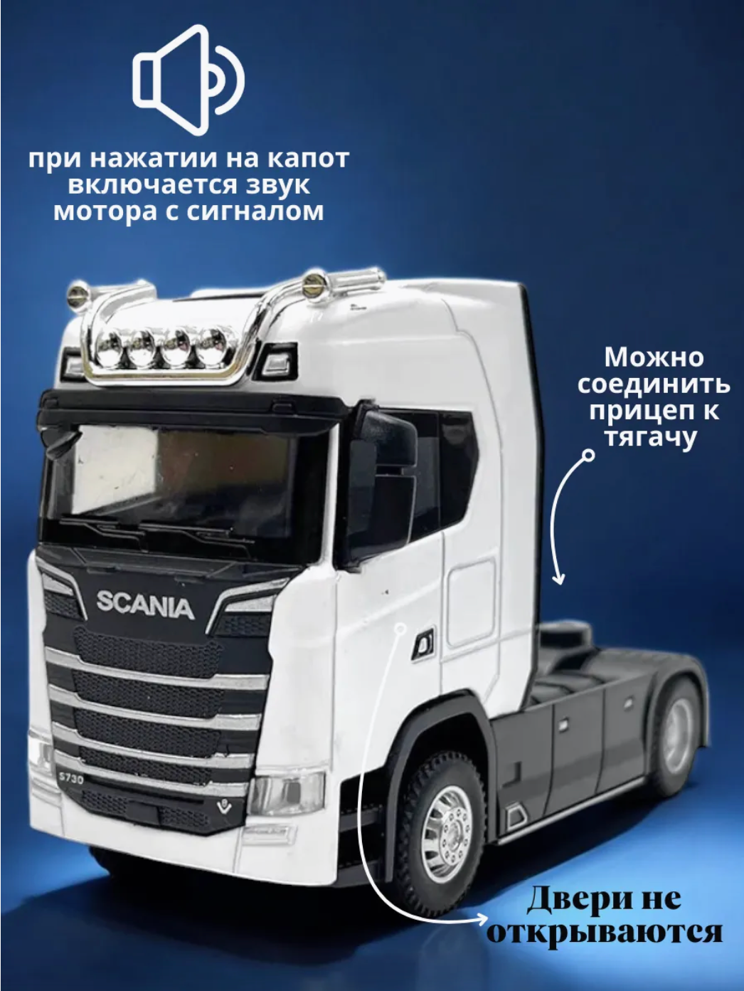 Металлический тягач, детская машина SCANIA белая от MARI TOYS информация: