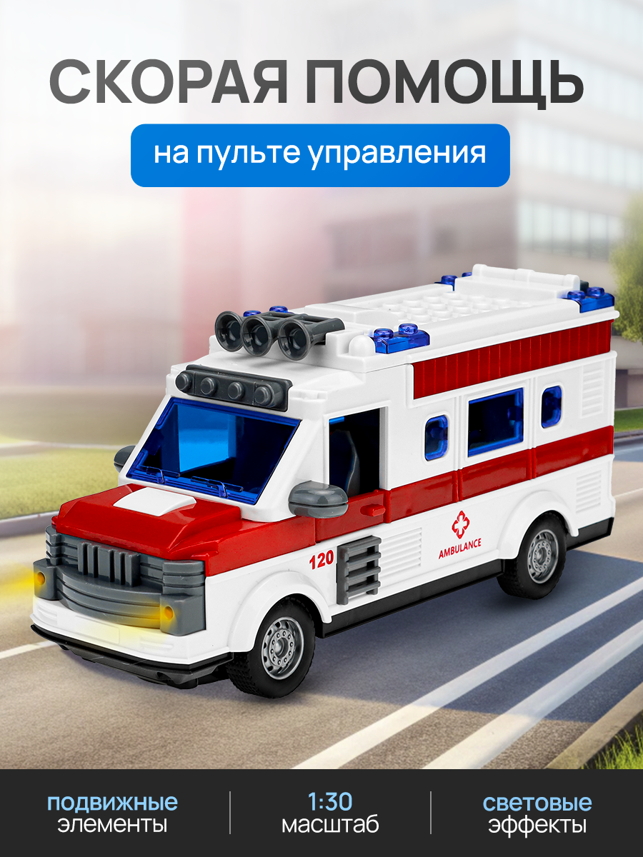 Машинка "Скорая помощь" на пульте управления (световые эффекты, двери открываются), 10.5х7.5х22 см информация: