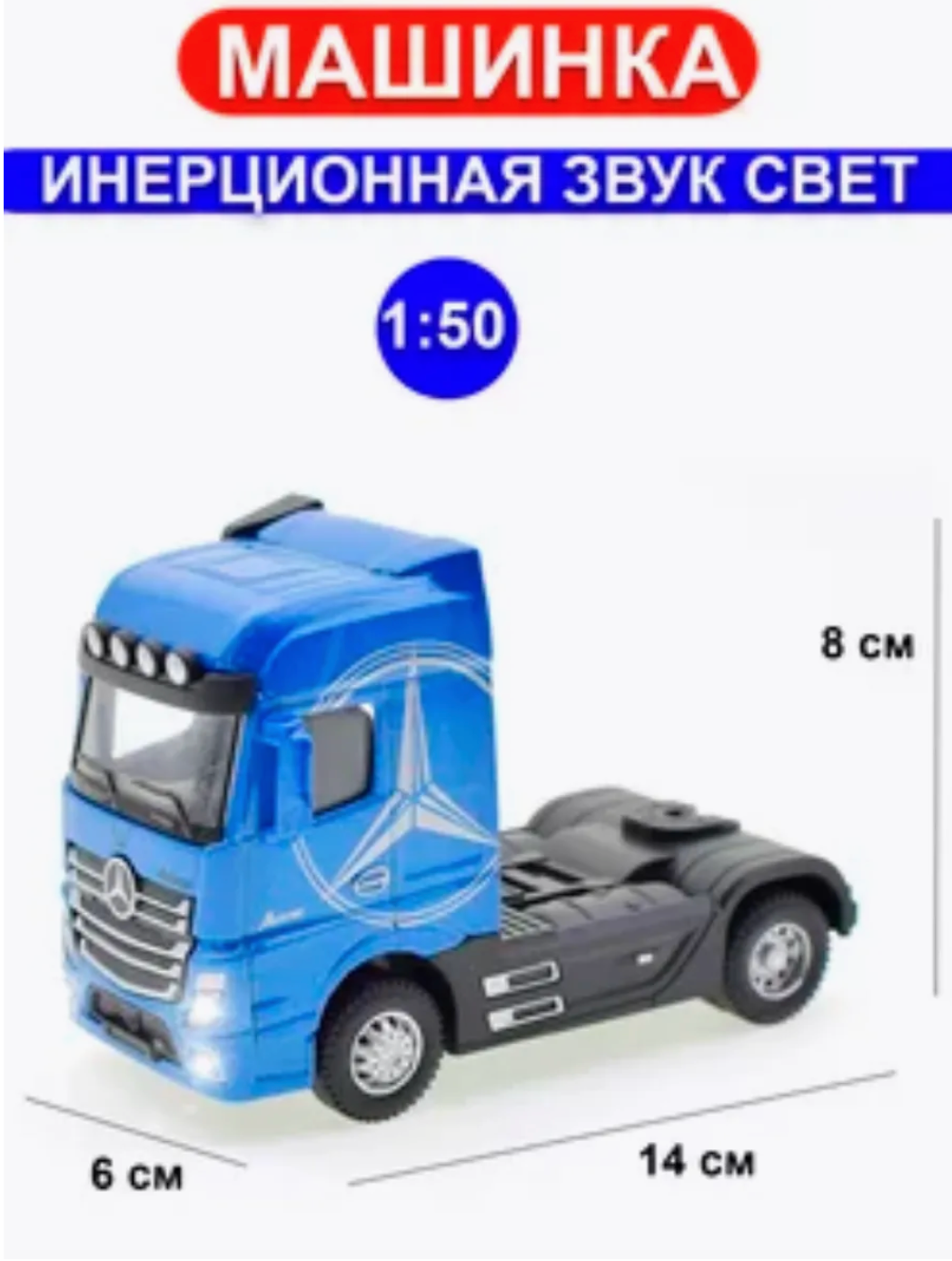 Отзывы на Металлическая модель МЕРСЕДЕС инерционная, тягач синий, с эффектами звука и света от MARI TOYS