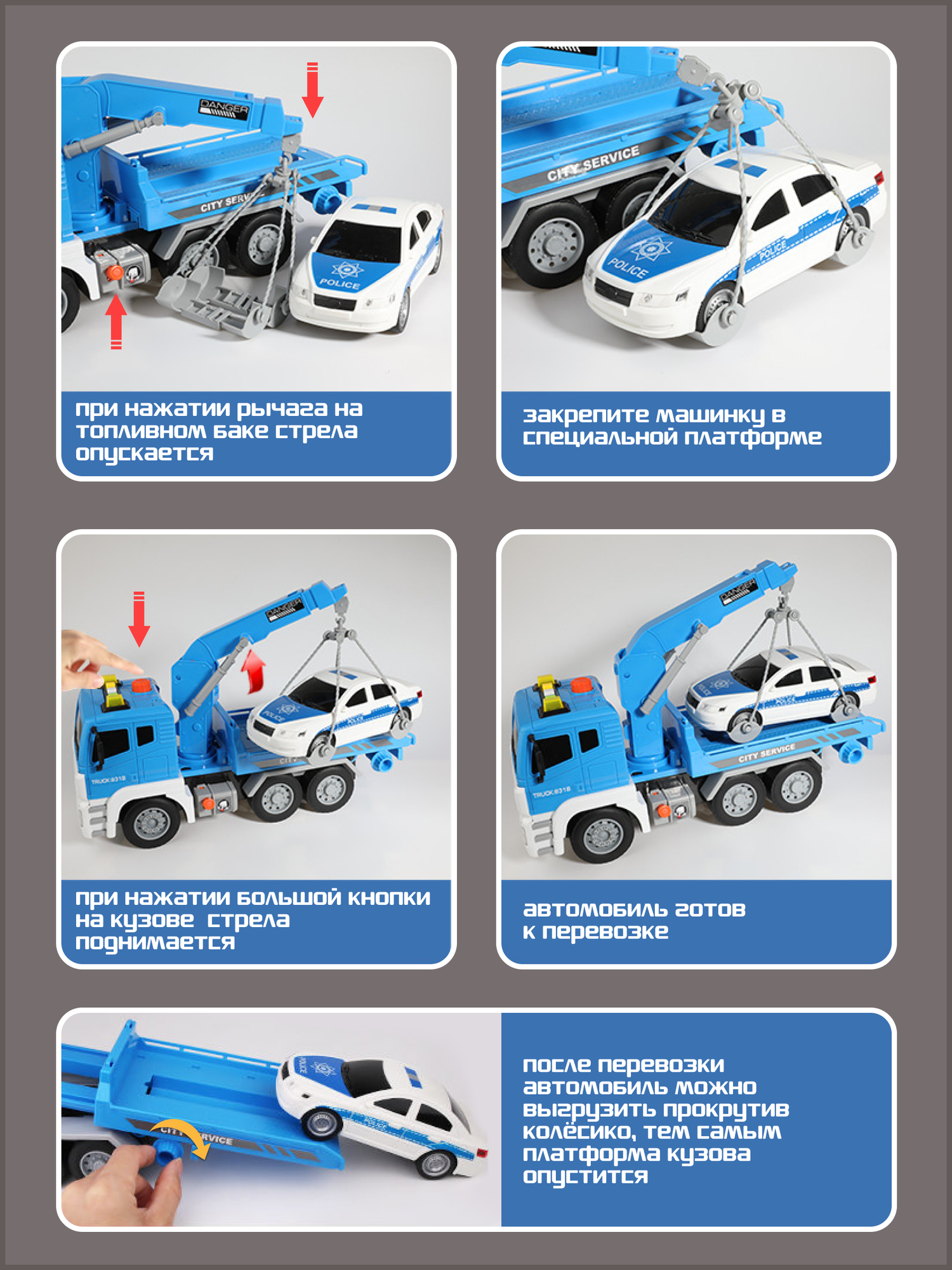 Отзывы на Набор машин Эвакуатор 31 см инерционный и полиция, свет, звук, подвижная платформа и кран