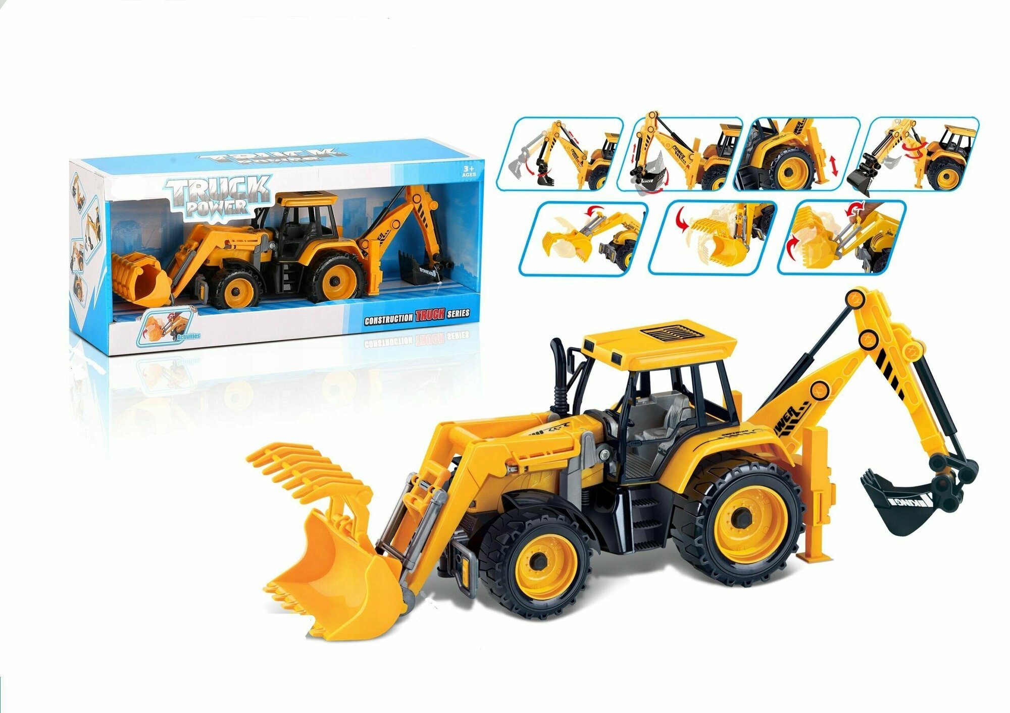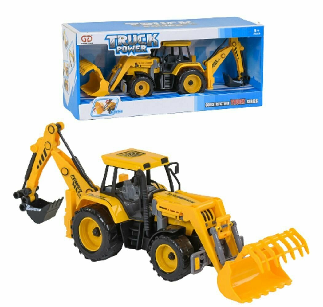10 цен на Машинка инерционная игрушка трактор экскаватор с 2 ковшами для мальчика, длина 34 см