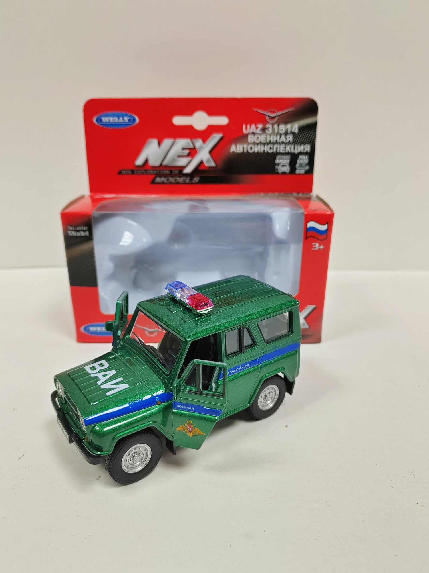 Машинка Welly модель УАЗ 31514 Военная Автоинспекция, зеленый информация: