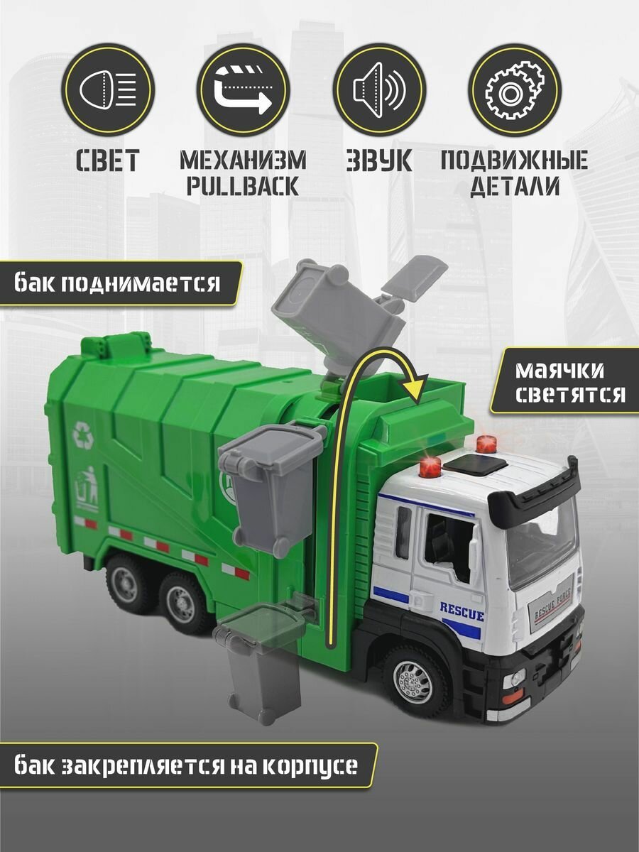 Мусоровоз Kid Rocks AB-2305, интерактивный, со светом и звуком, масштаб 1:32, синий информация: