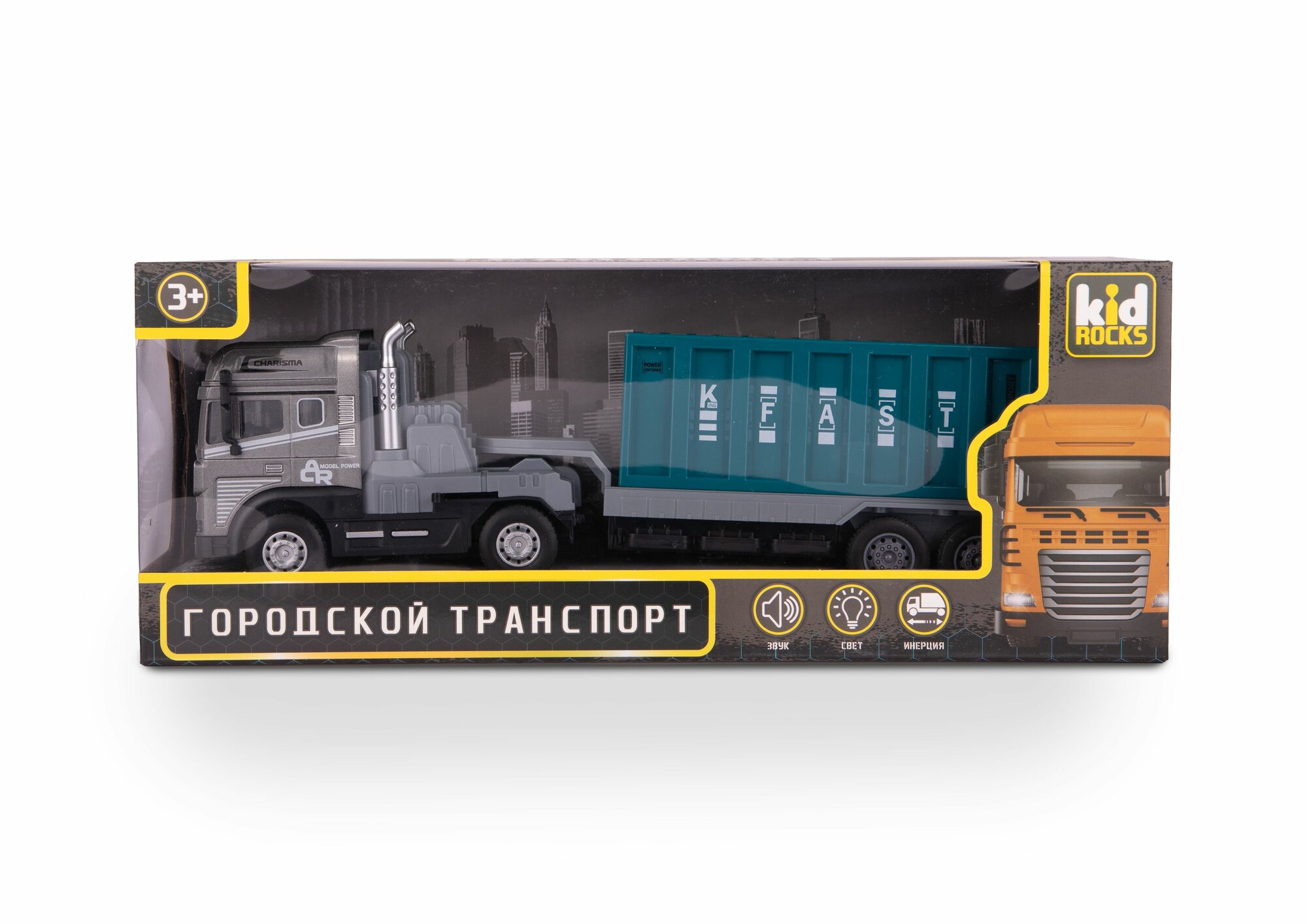 10 цен на Машинка-контейнеровоз, со св. и зв, 1:24, Kid Rocks