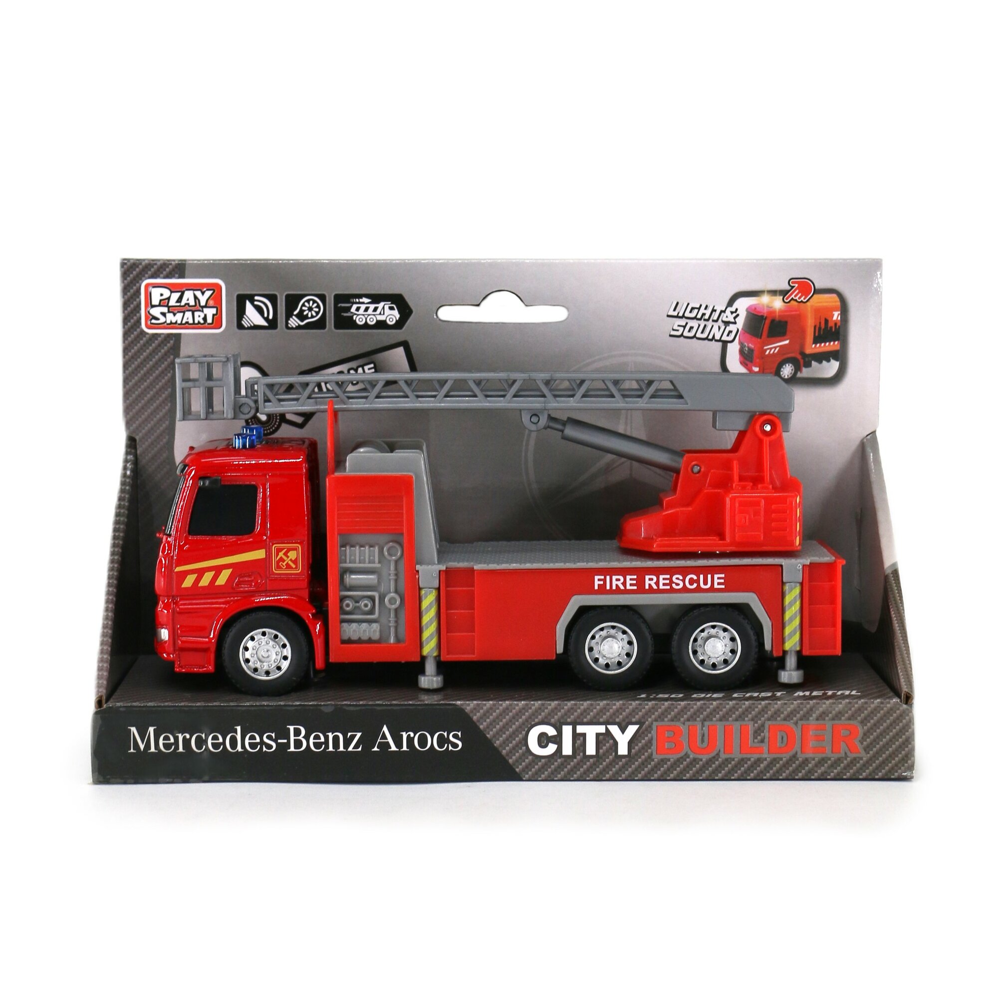 Автомобиль игрушечный "Пожарная машина Mercedes-Benz" (красный) инерционный свет звук PLAY SMART 6718 информация:
