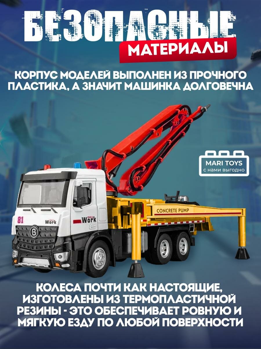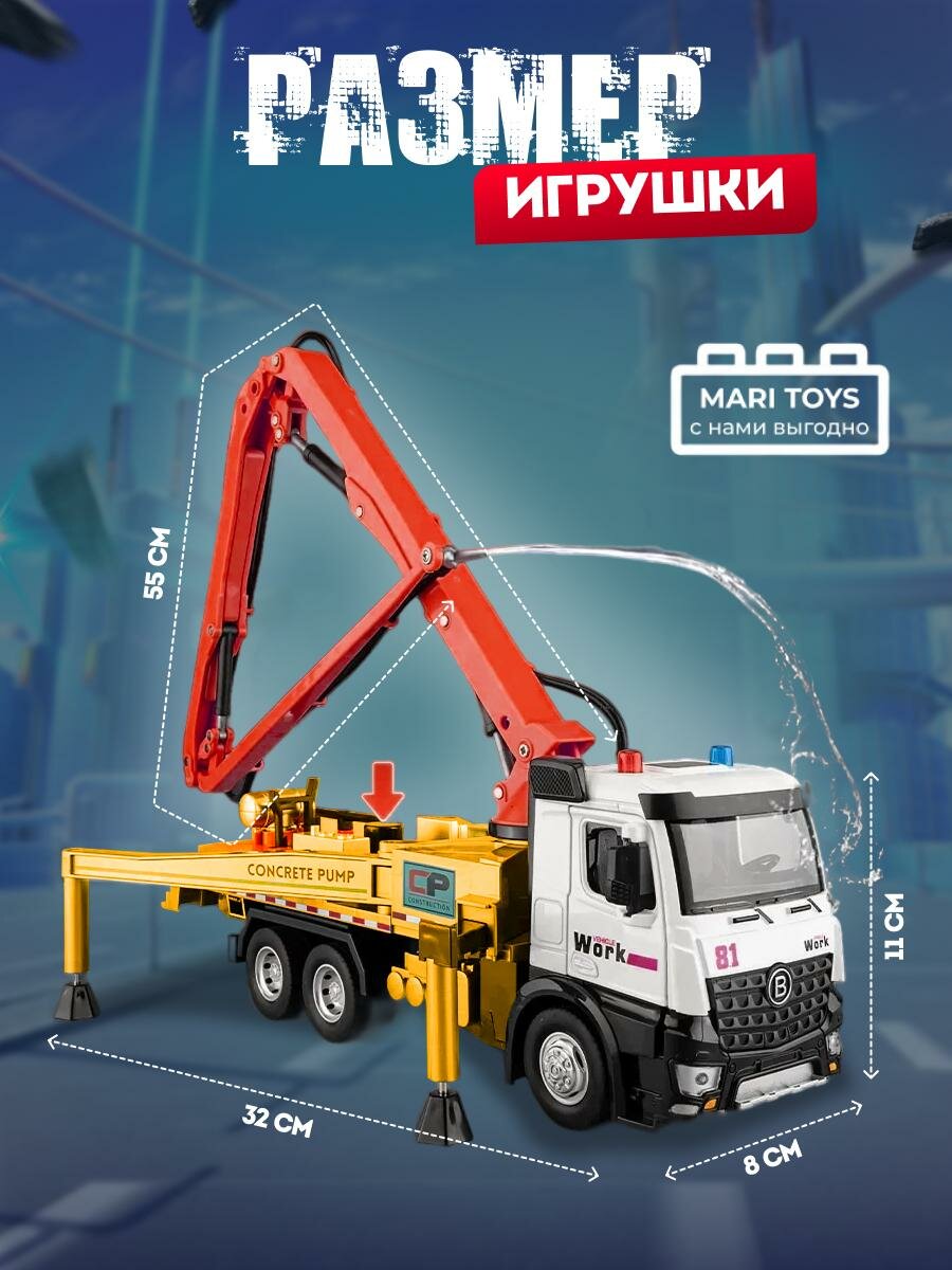 Машинка металлическая бетононасос с эффектами звука и света красный от MARI TOYS информация: