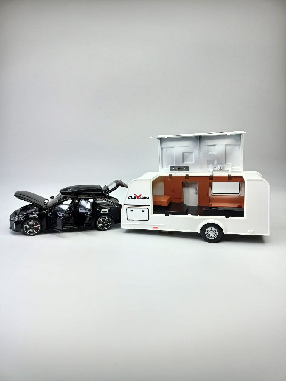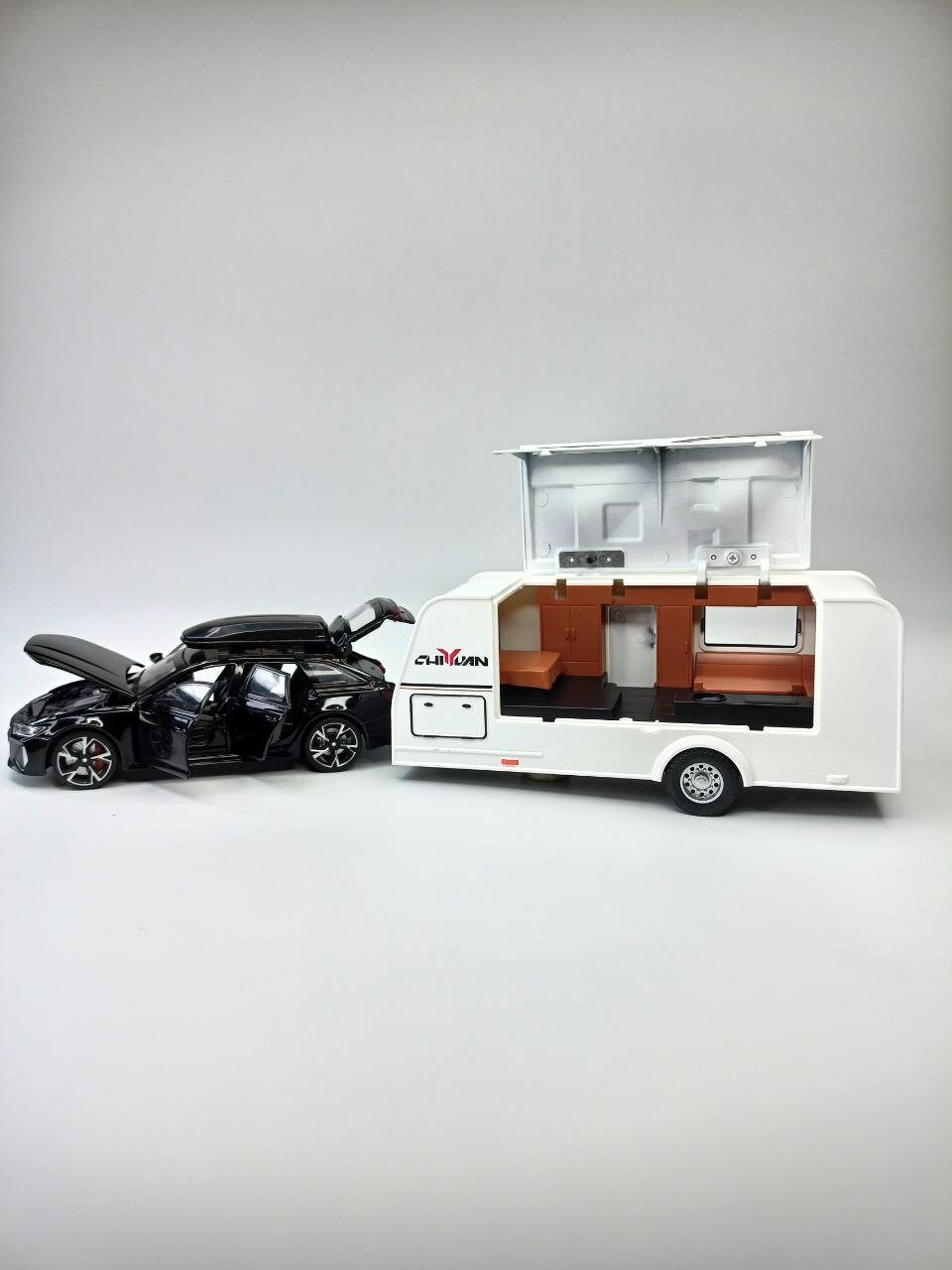 Коллекционная машинка игрушка металлическая Audi RS6 Avant с трейлером для мальчиков масштабная модель 1:24 черная информация: