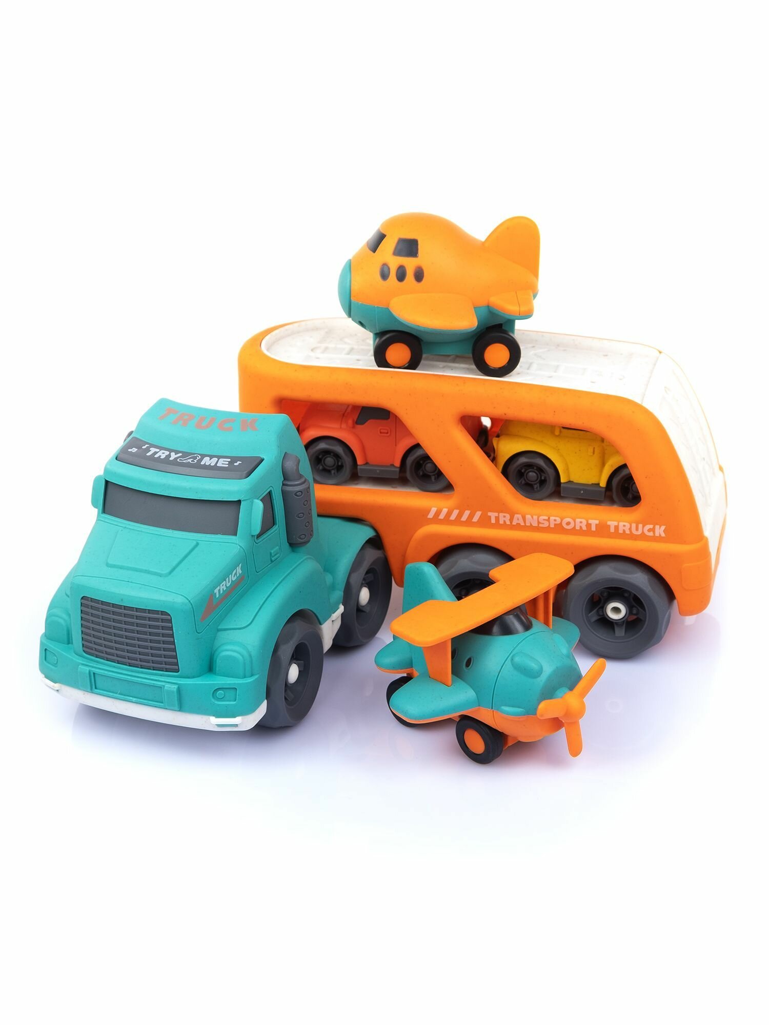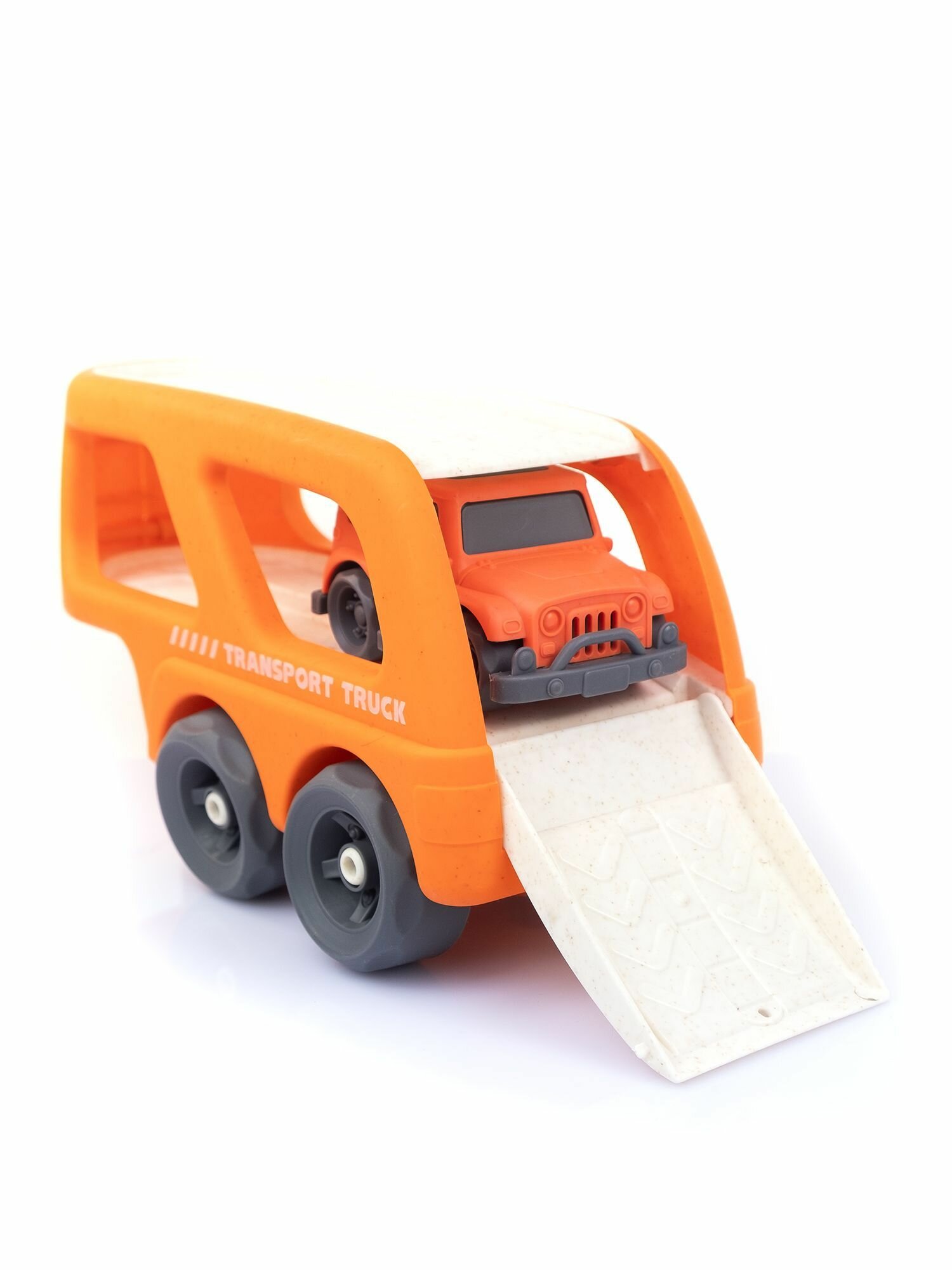 Игрушка машинка грузовик автовоз, желто-оранжевый / Биопластик ЭКО материалы информация: