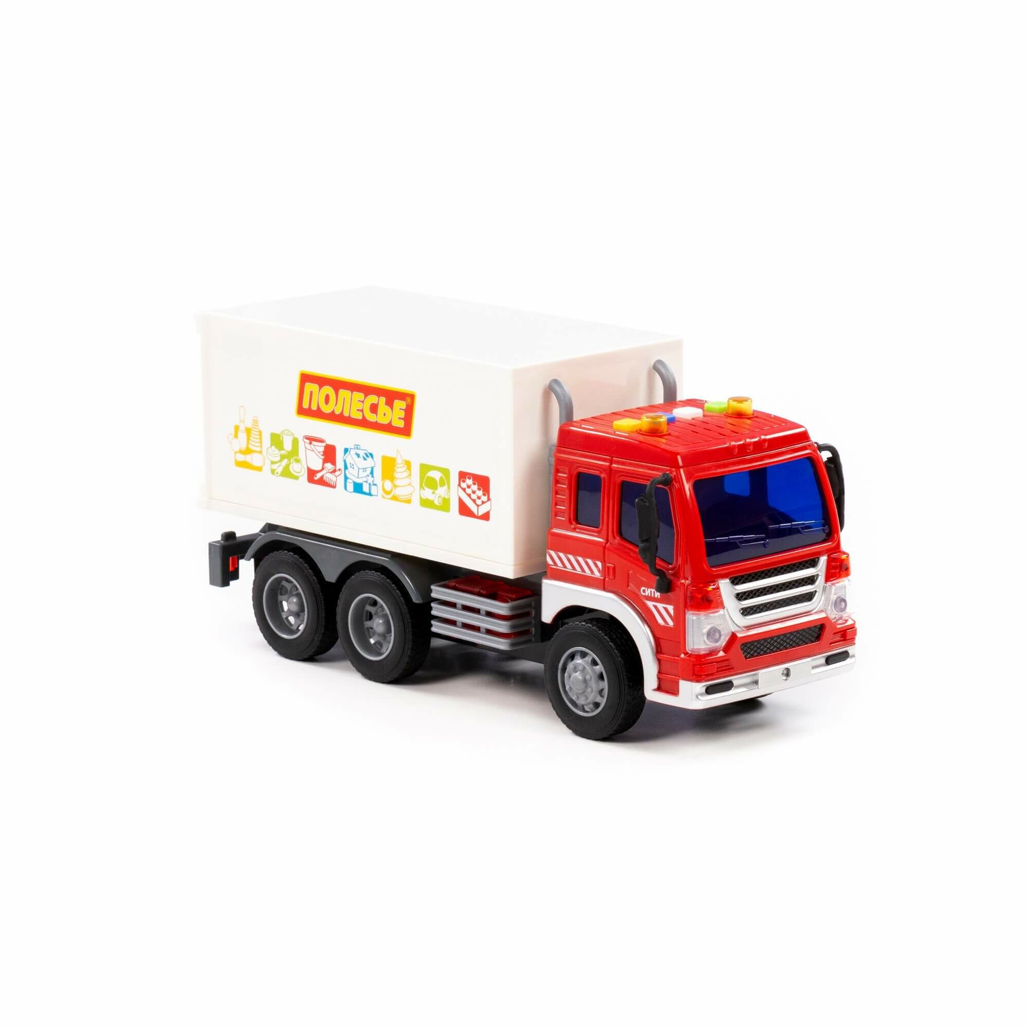 Сити, автомобиль-фургон инерционный (со светом и звуком) (красно-белый) (в коробке) информация: