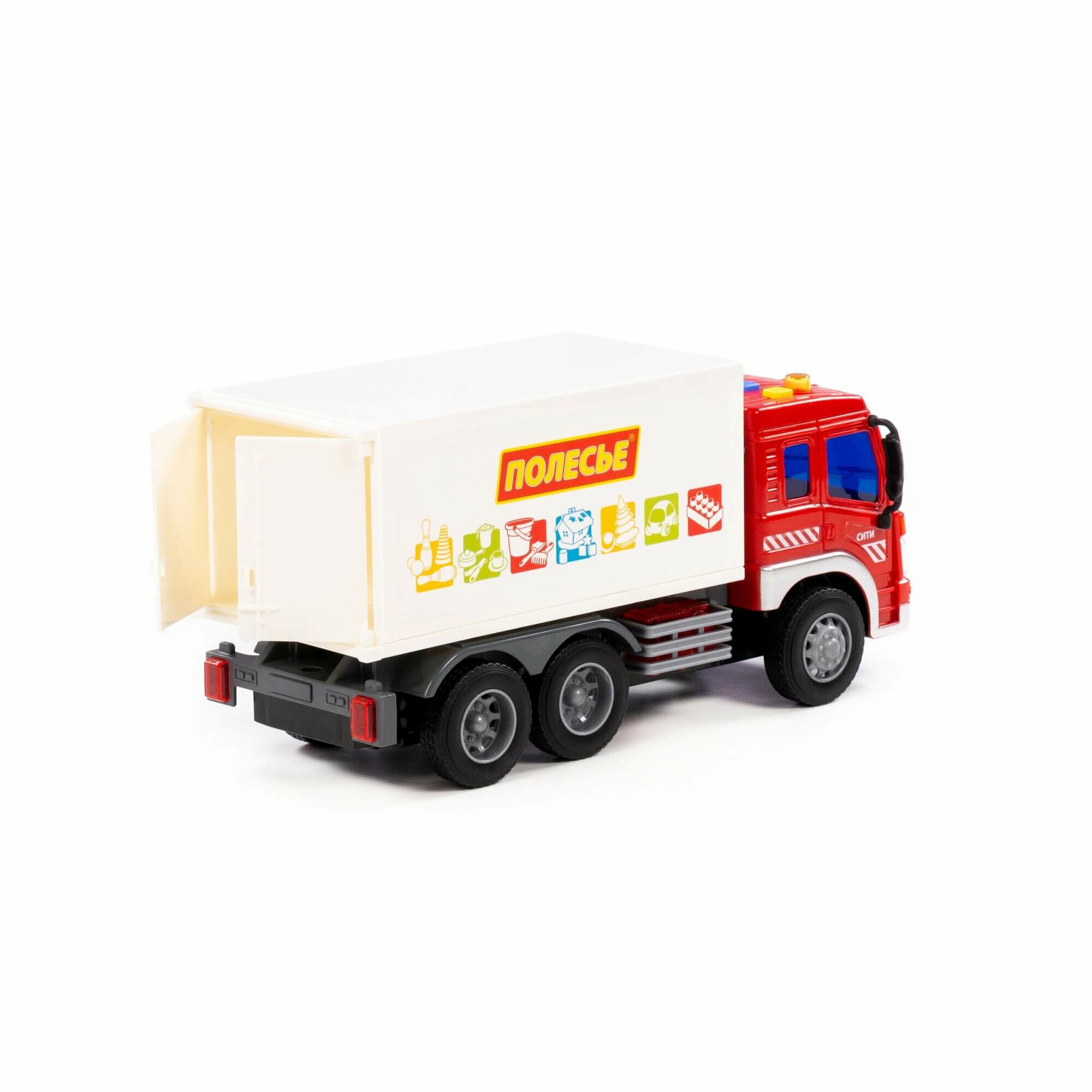 Машинка автофургон 26 см (инерция, 4 звука, свет, открытие дверок фургона) / Полесье Сити