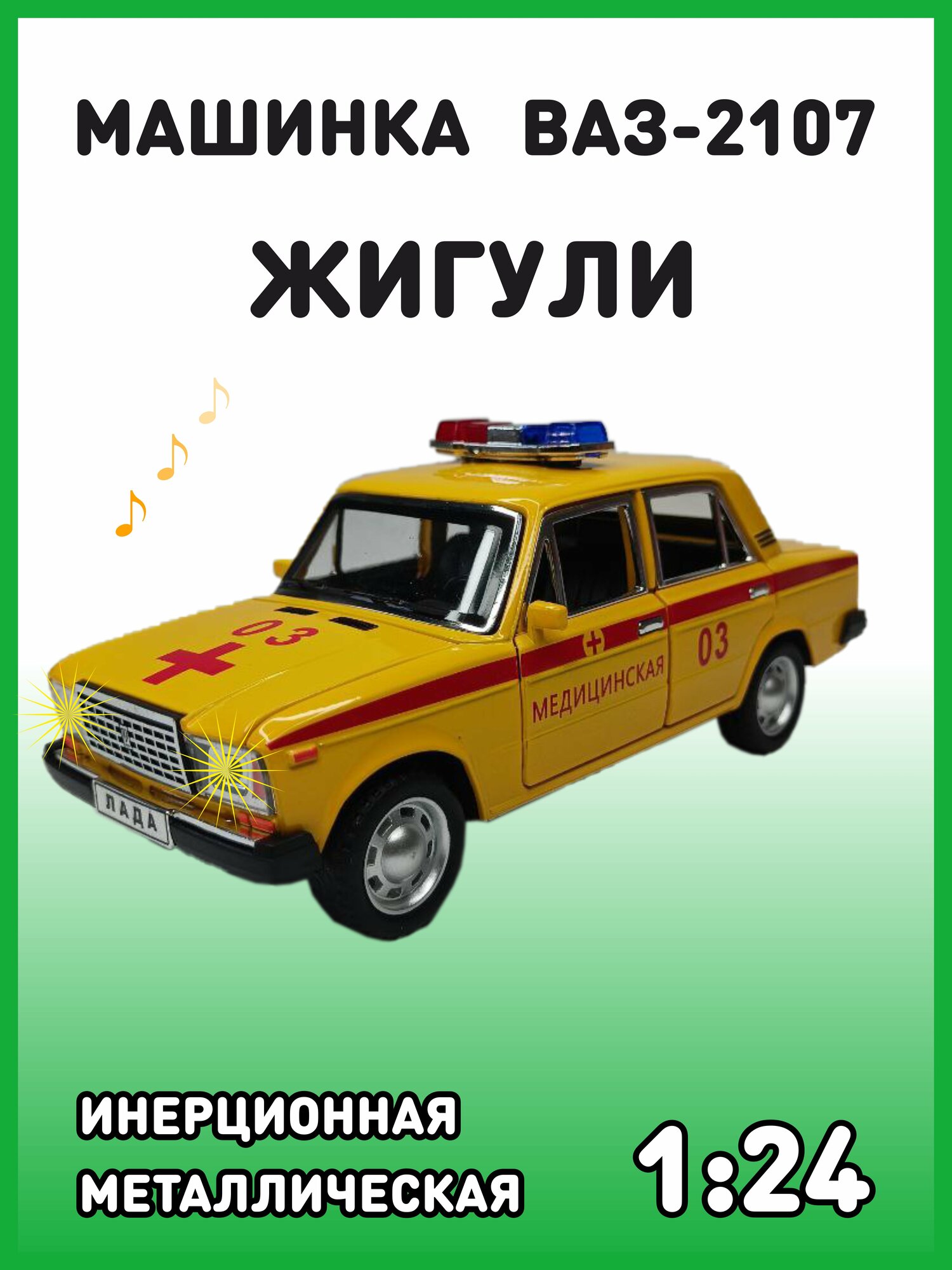 Отзывы на Модель автомобиля Жигули ВАЗ 2107 коллекционная металлическая игрушка масштаб 1:24 желтая медицинская