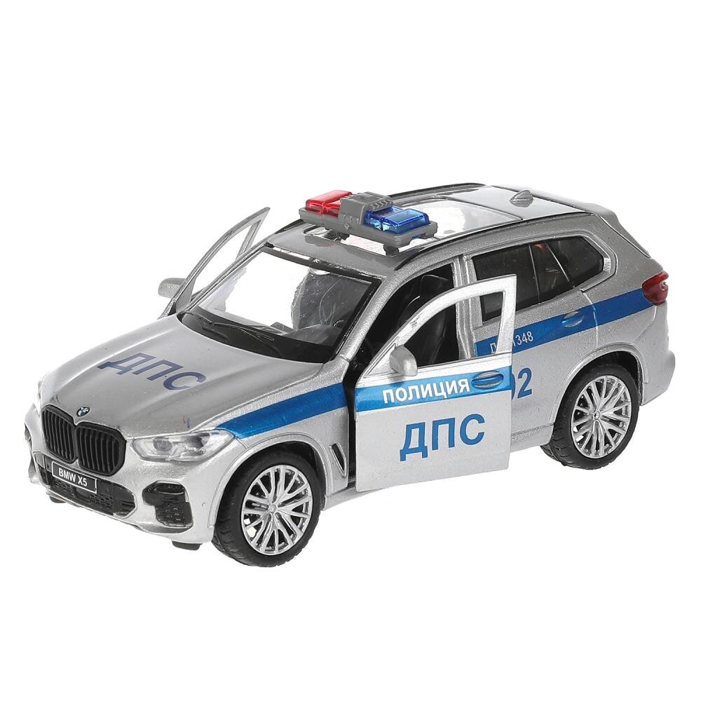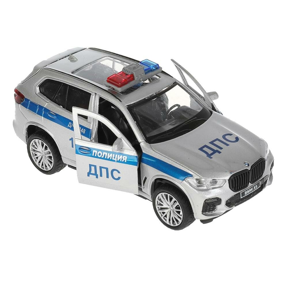 Машинка Технопарк BMW X5 M Полиция ДПС серебристый, 12 см, свет, звук. информация: