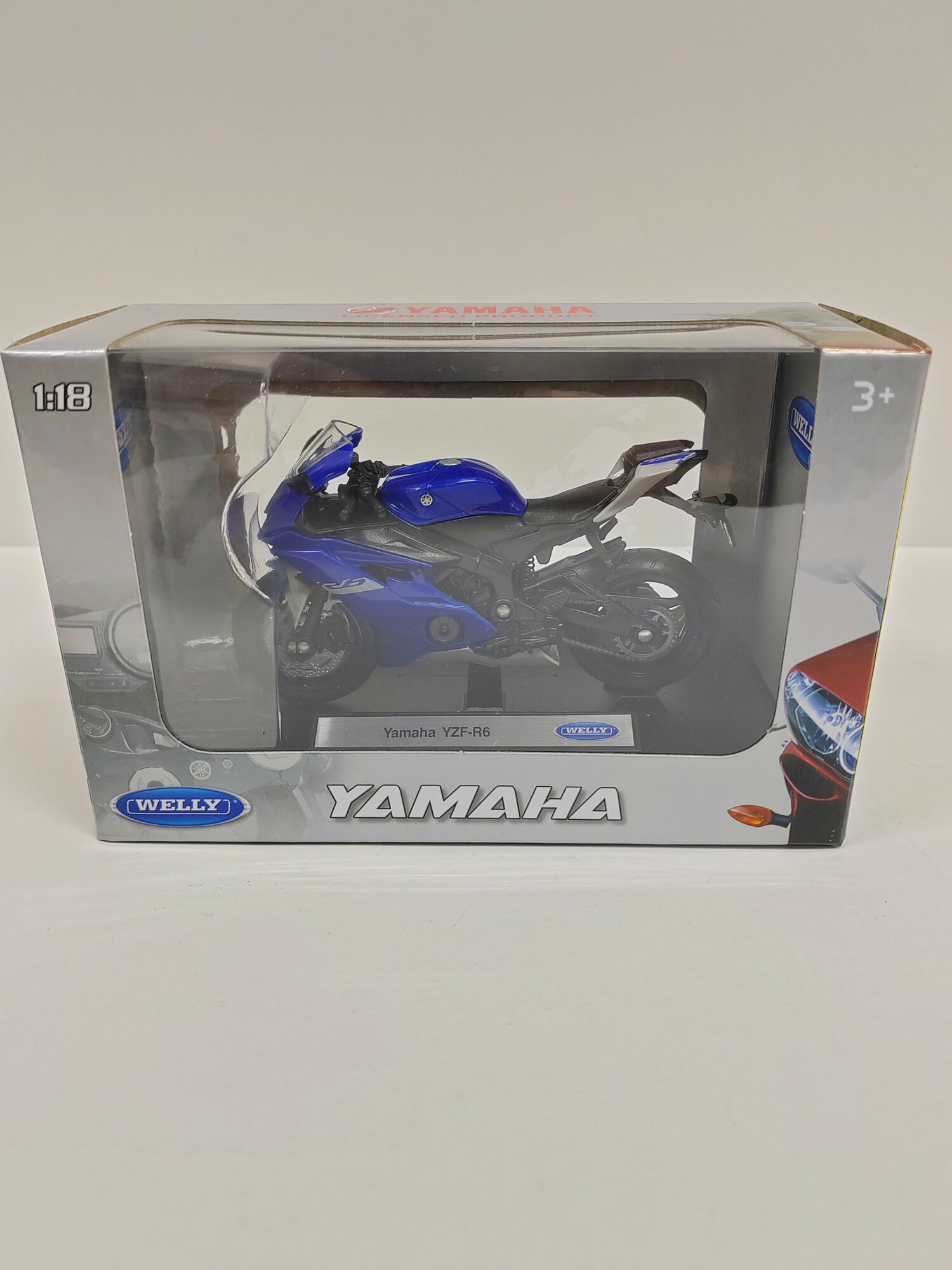 Модель Welly мотоцикл Yamaha YZF-R6 в масштабе 1:18, синий, 11,5 см. информация: