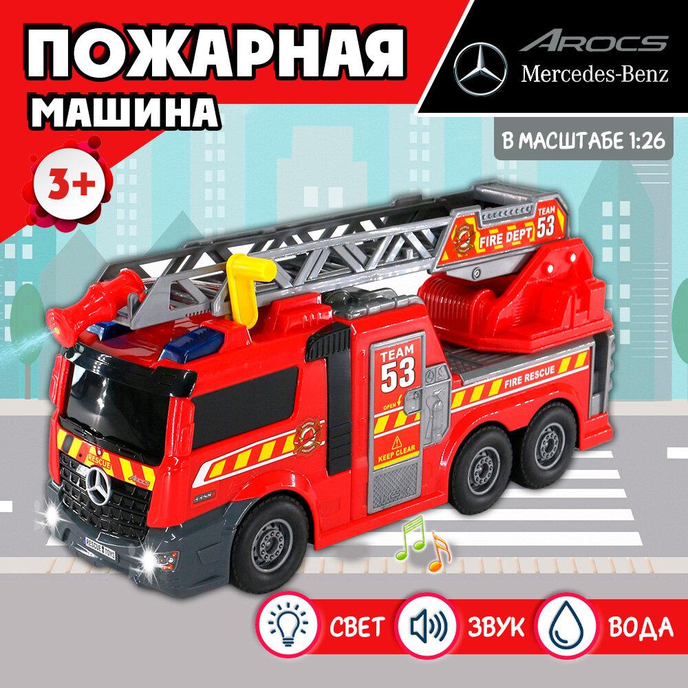 Автомобиль игрушечный "Пожарная машина Mercedes-Benz" свет звук PLAY SMART 9719A информация:
