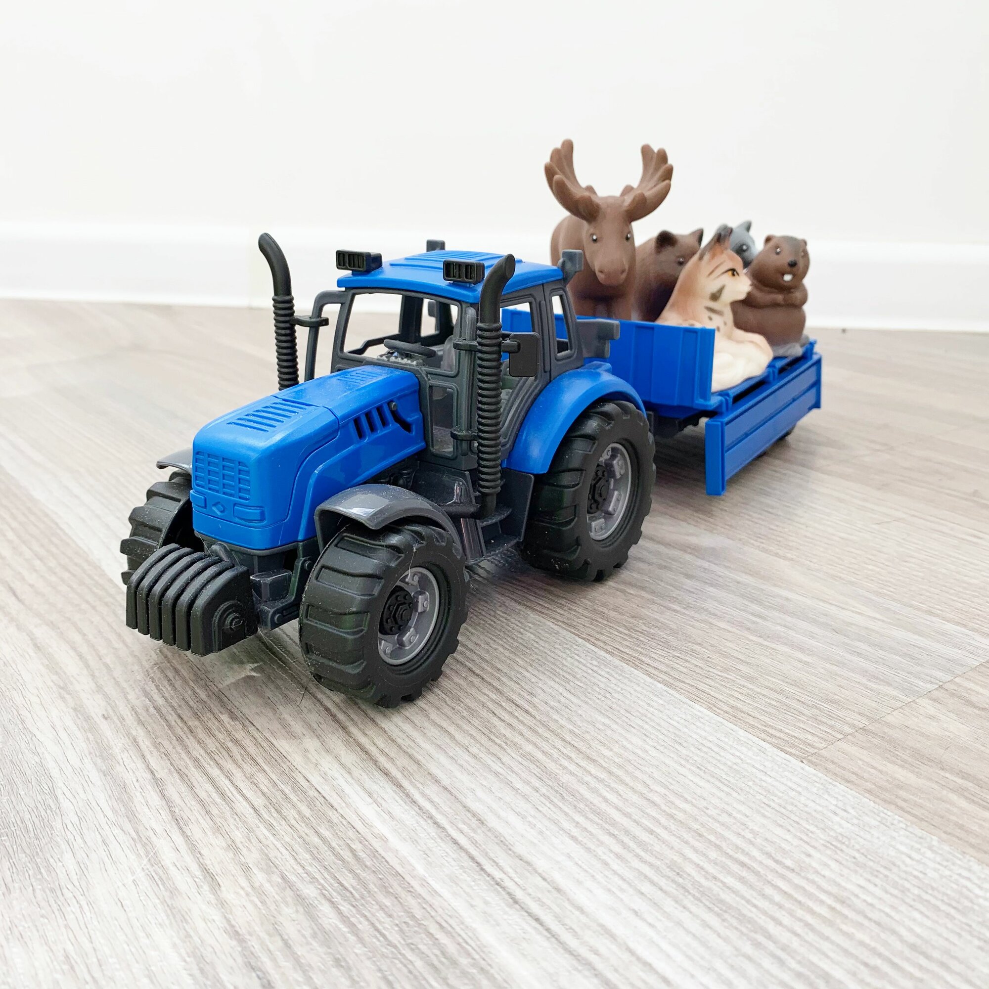 Набор инерционный трактор с прицепом и 5 фигурок животных леса и тайги / Полесье (синий) информация: