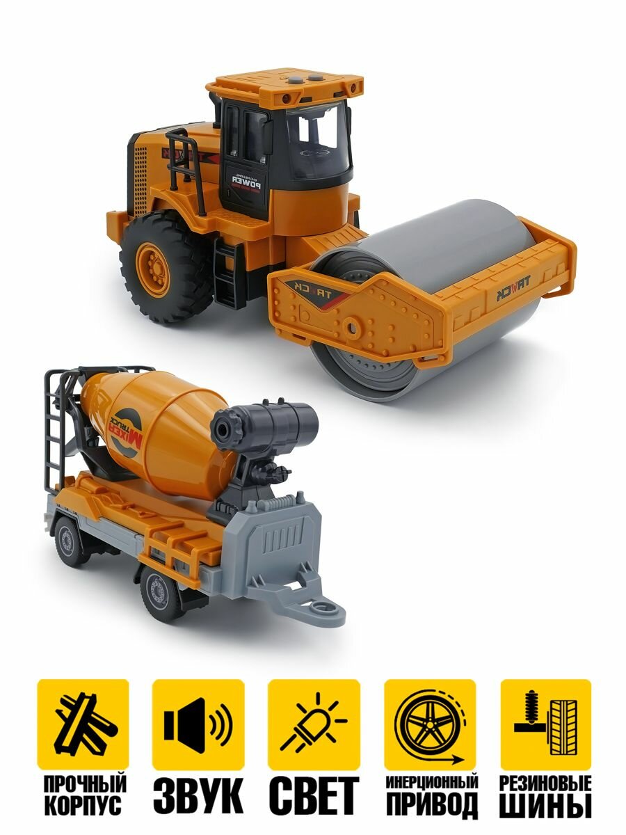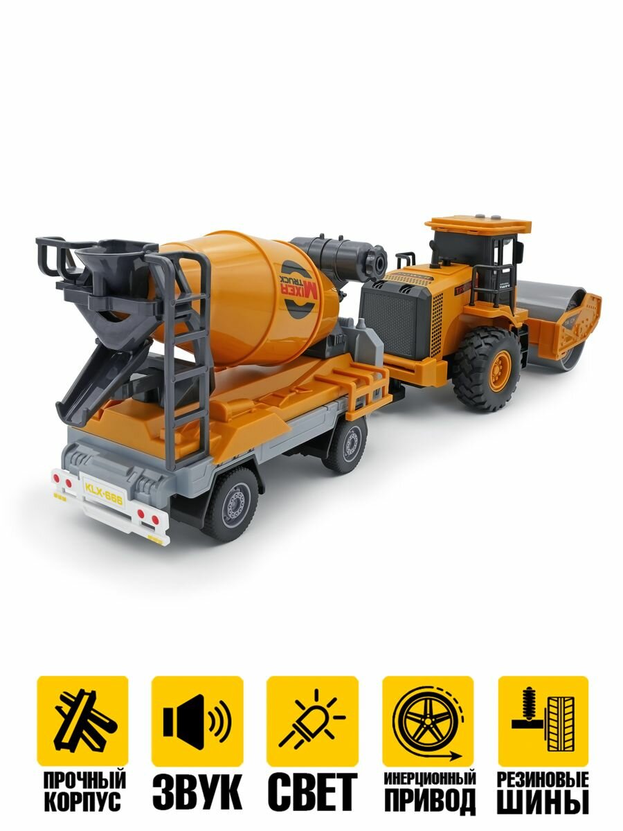 10 цен на Машинка дорожный каток с прицепом бетономешалка световые и звуковые эффекты