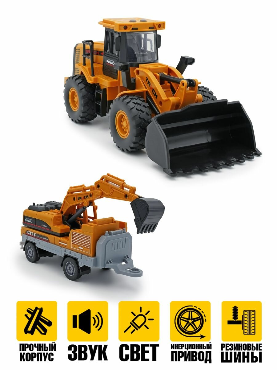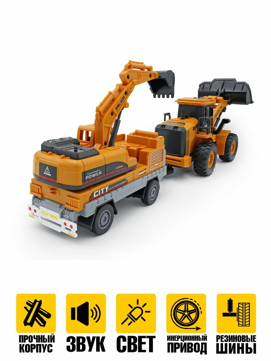 10 цен на Колесный Грейдер трактор с ковшом и прицеп экскаватор инерционный привод световые и звуковые эффекты