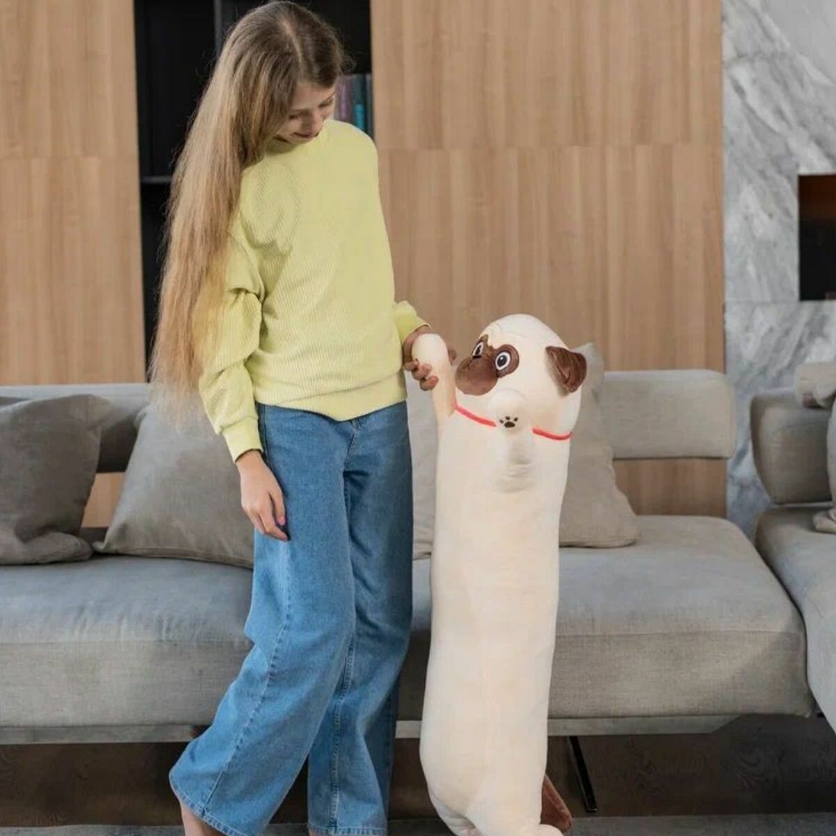Мягкая игрушка КупиКота "Мопс Батон", текстиль, 110см, бежевая информация: