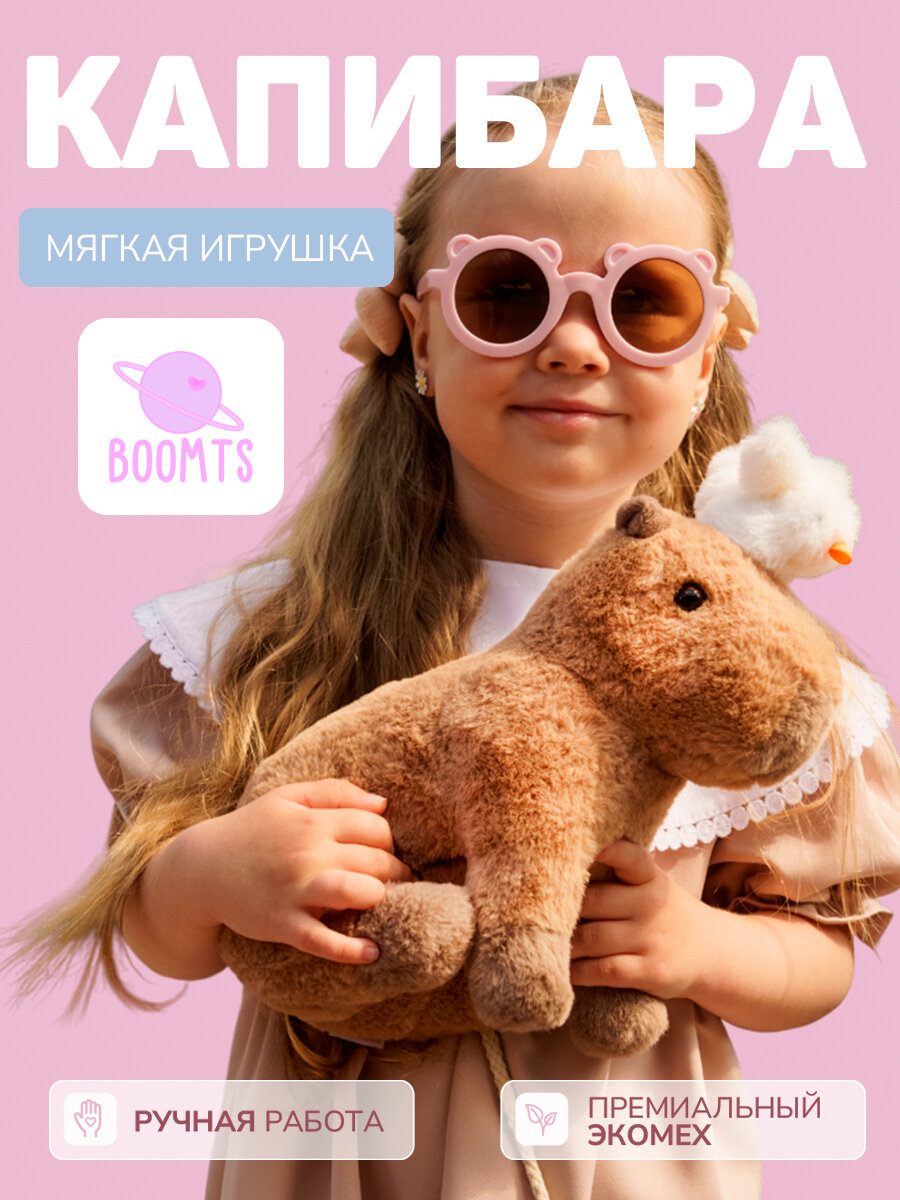 Мягкая игрушка Капибара BOOMTS с гусёнком на магните, премиум эко-мех, ручная работа, подарок для мальчика, для девочки информация: