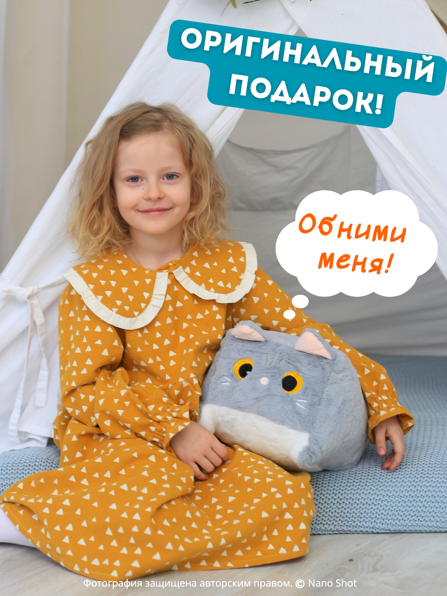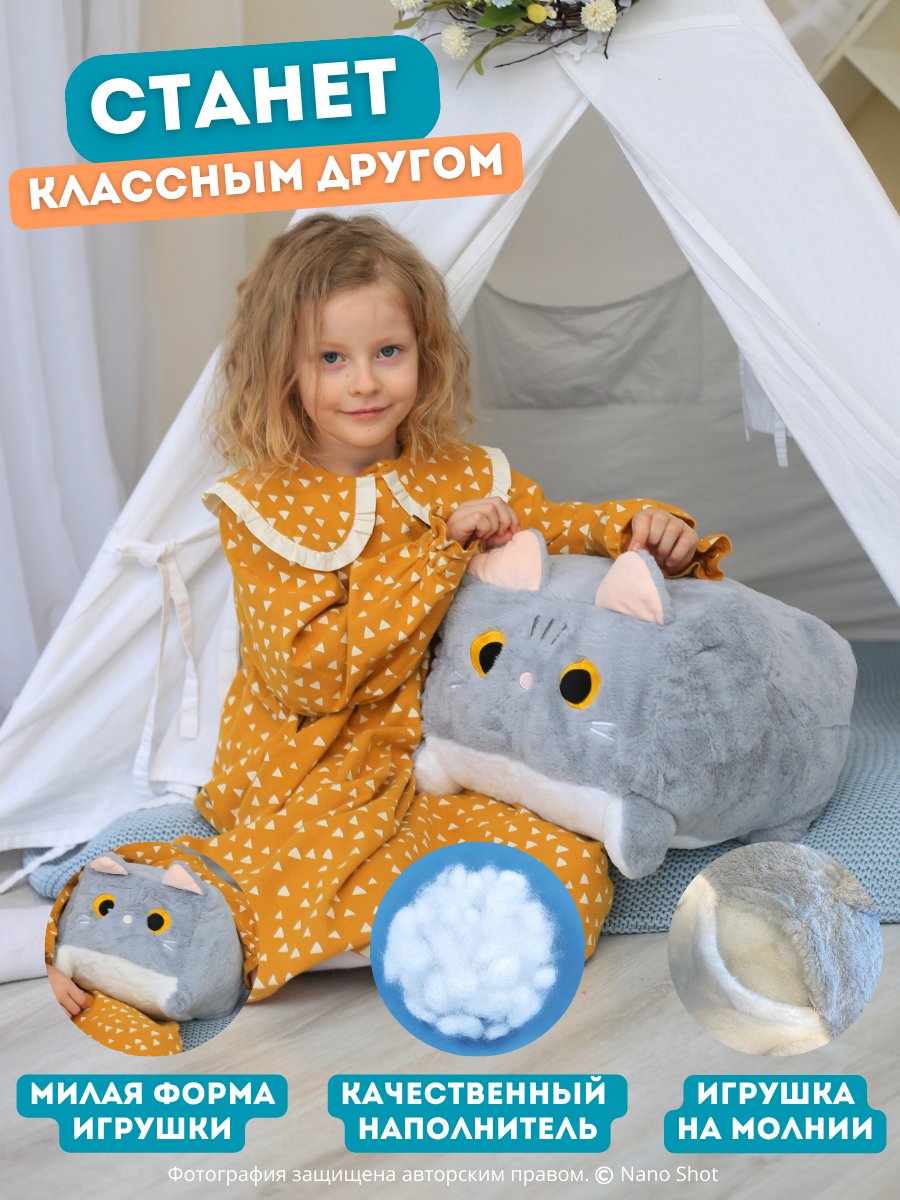 Мягкая плюшевая игрушка Nano Shot Котик Котокуб, 40 см, серый информация: