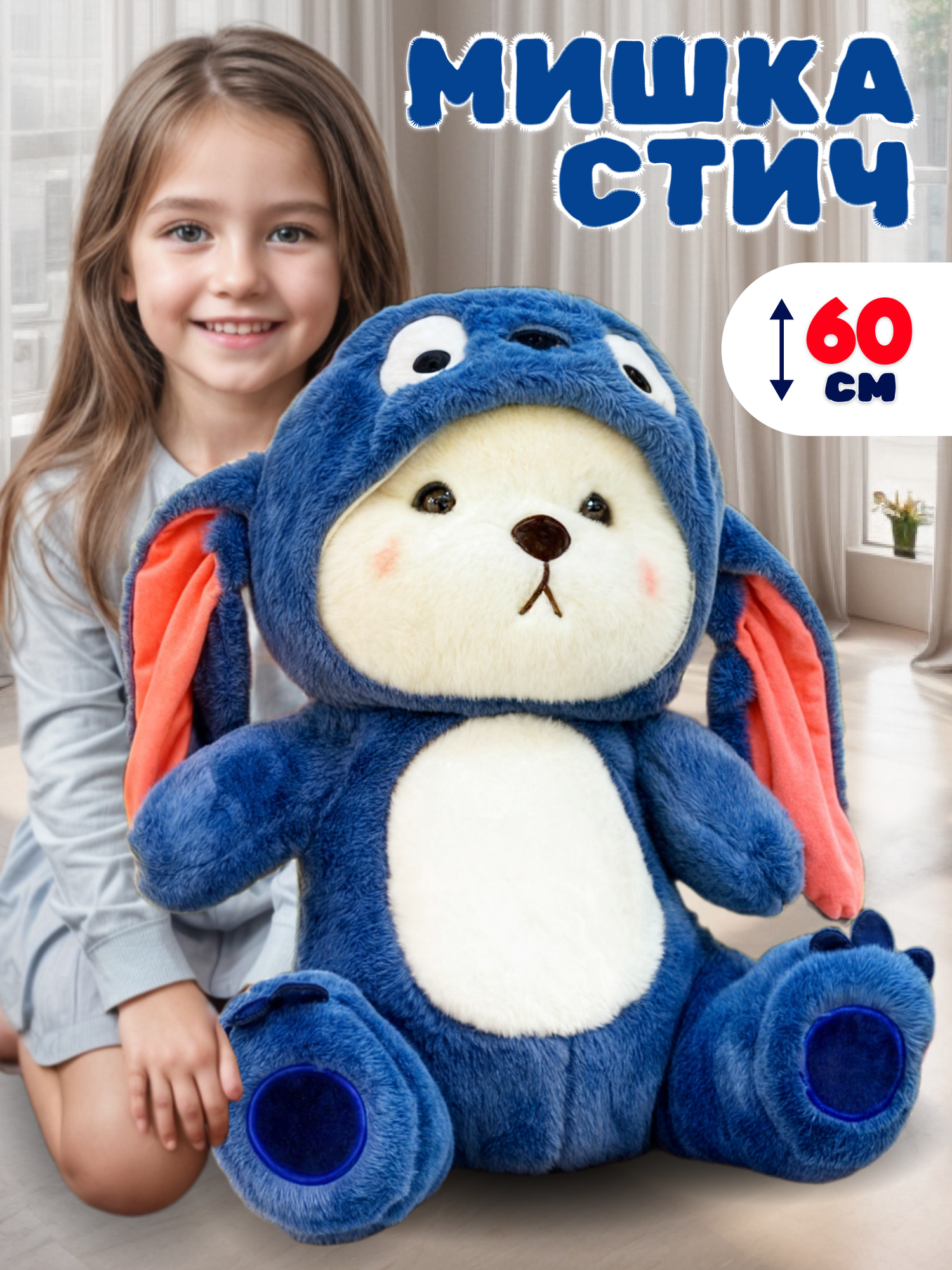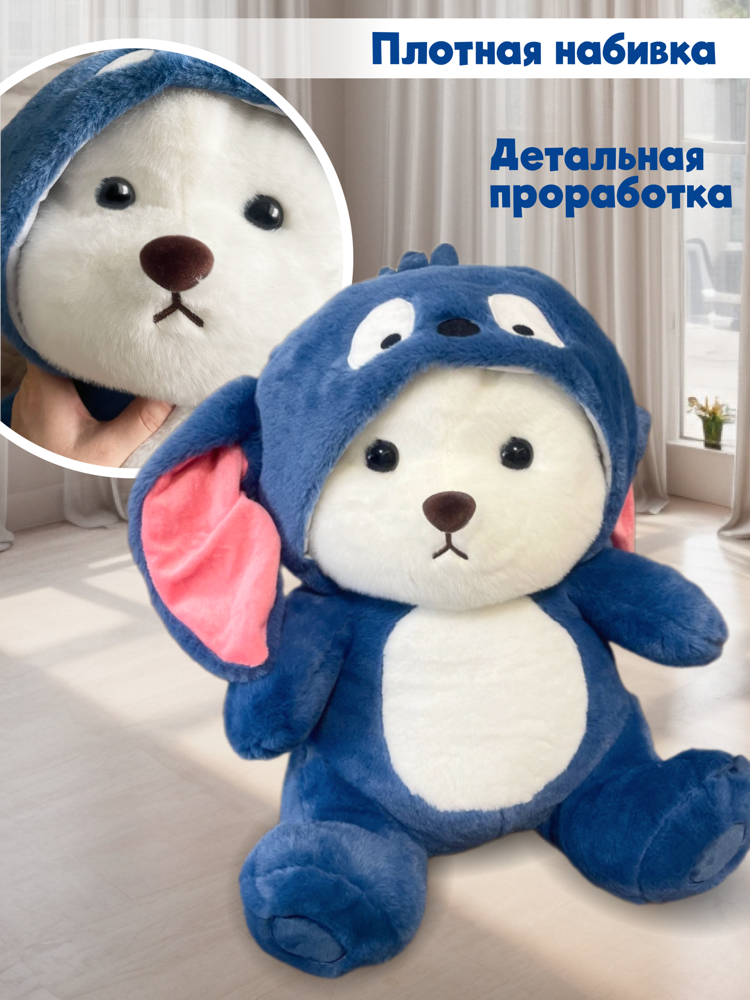 Большой мягкий плюшевый медведь в съемном капюшоне 60 см информация: