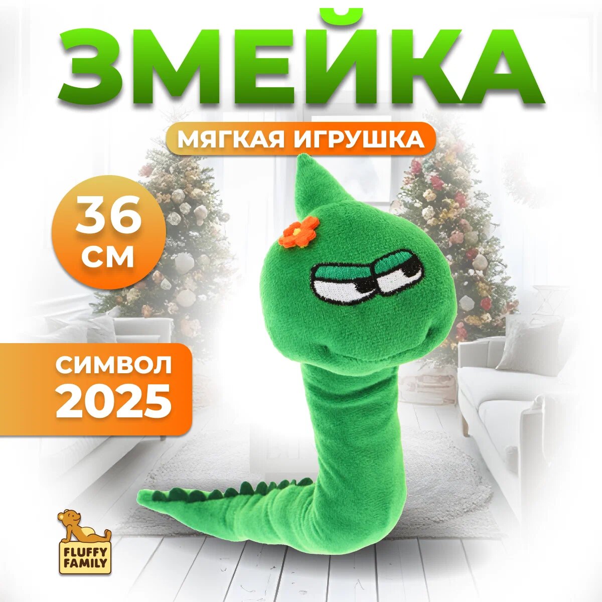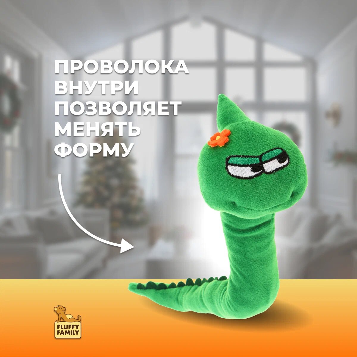 10 цен на Игрушка мягкая 682309 Fluffy Family Змейка на проволоке, Символ 2025 года, зеленая, 36см.