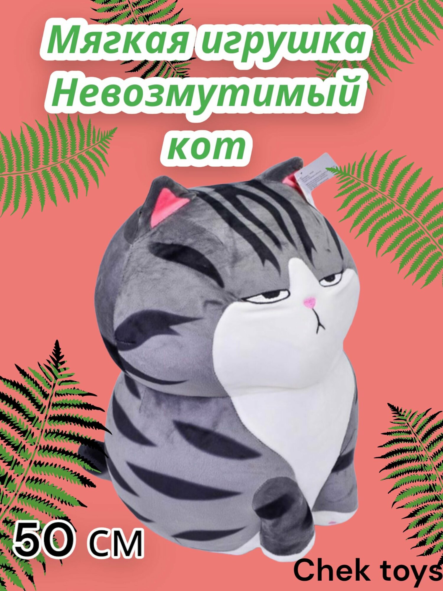 Детская мягкая плюшевая игрушка полосатый , невозмутимый кот /50 см информация: