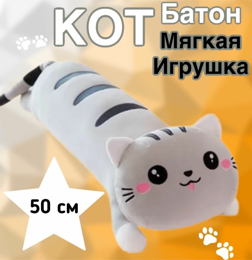 Мягкая плюшевая игрушка- подушка Кот Батон /антистресс для детей и взрослых /50 см информация: