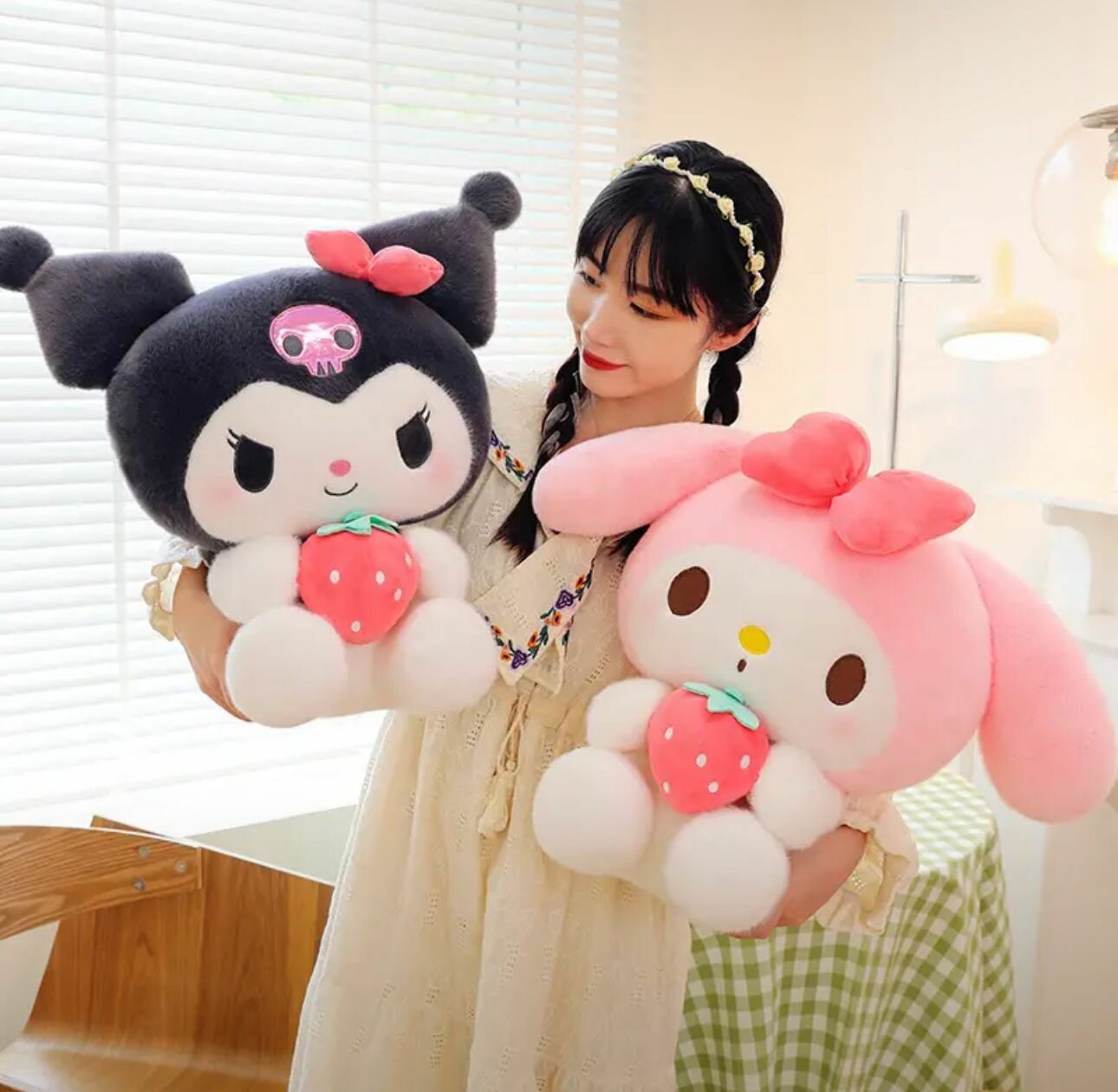 10 цен на Мягкая игрушка Куроми Моя мелодия Хеллоу Китти Kuromi с клубникой, 35 см