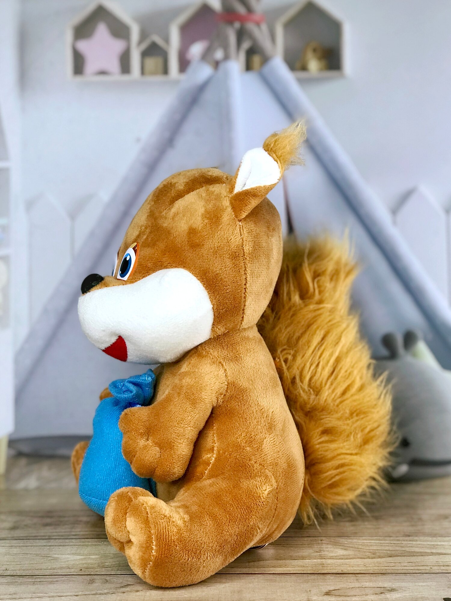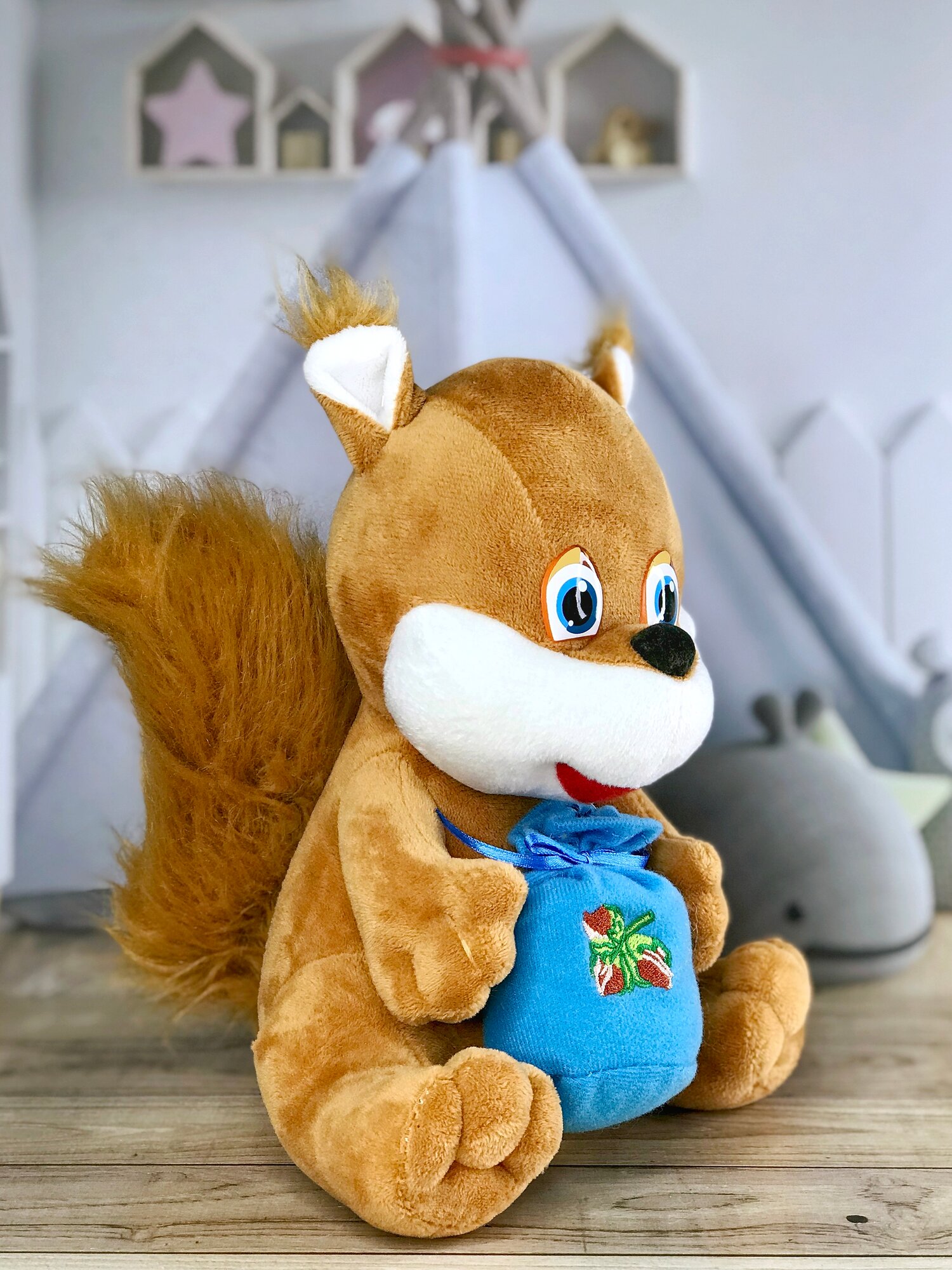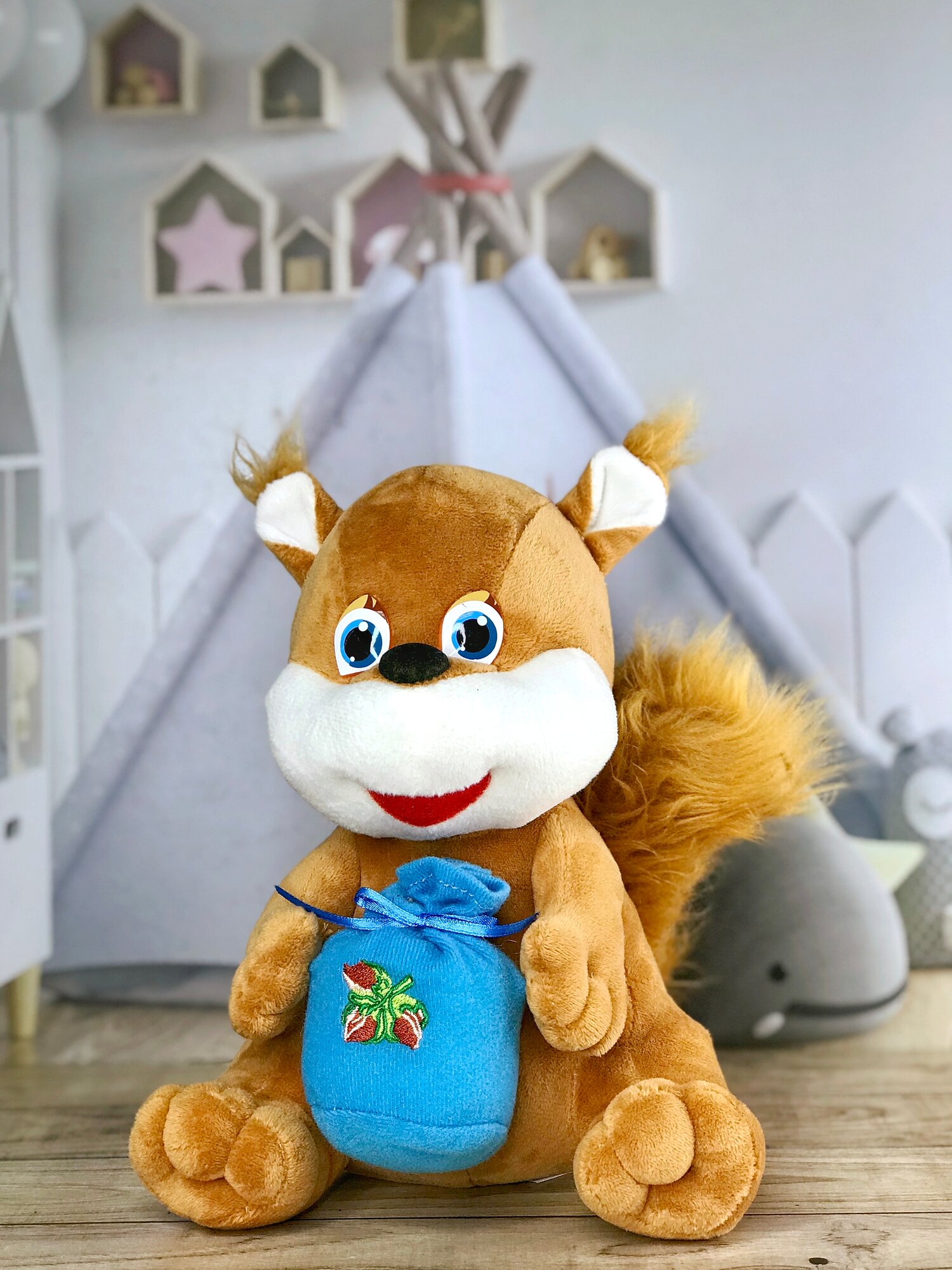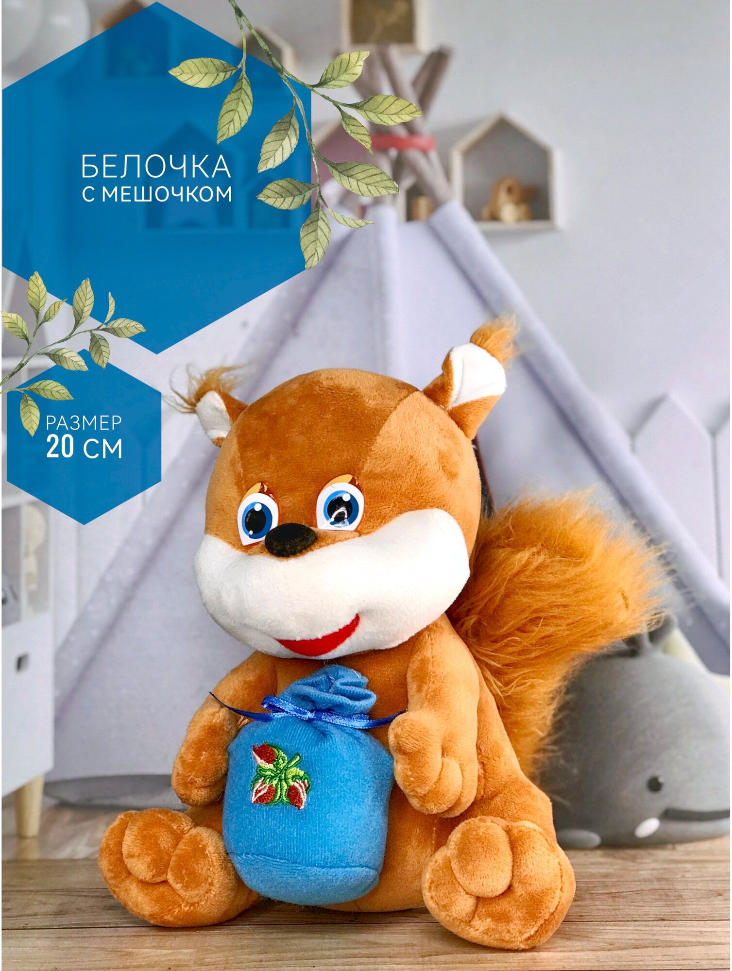 Мягкая игрушка Белка с синим мешочком 20 см информация: