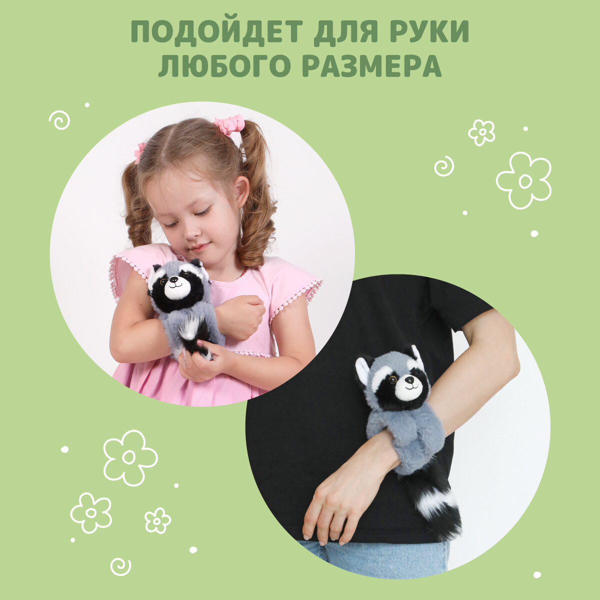 Отзывы на Мягкая игрушка-браслет Fluffy Family "Енот" 26см серая для детей