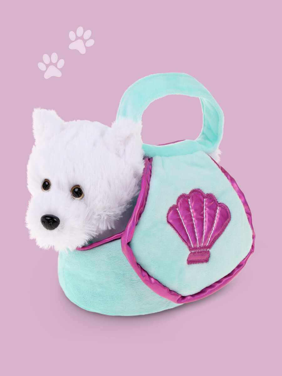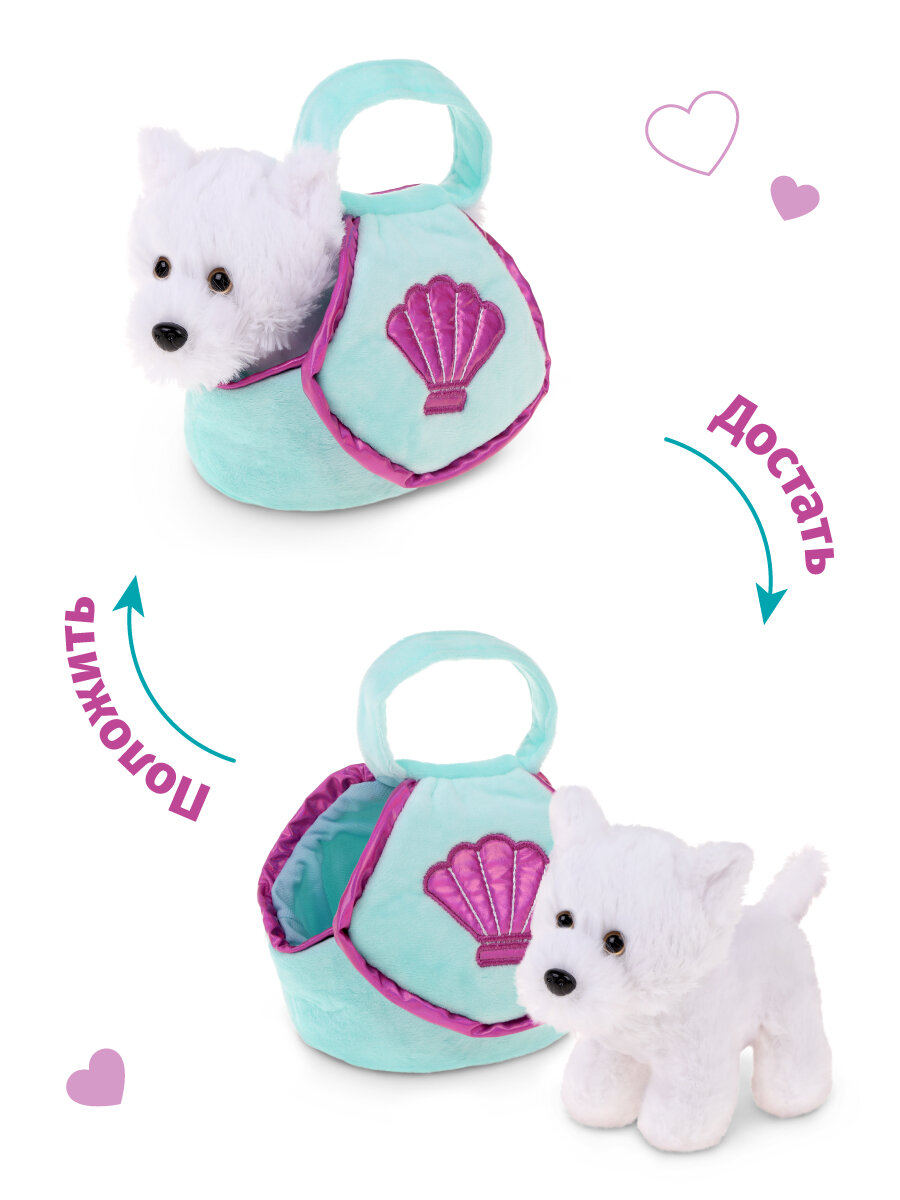 Мягкая игрушка Fluffy Family Собачка в бирюзовой сумочке, белая информация: