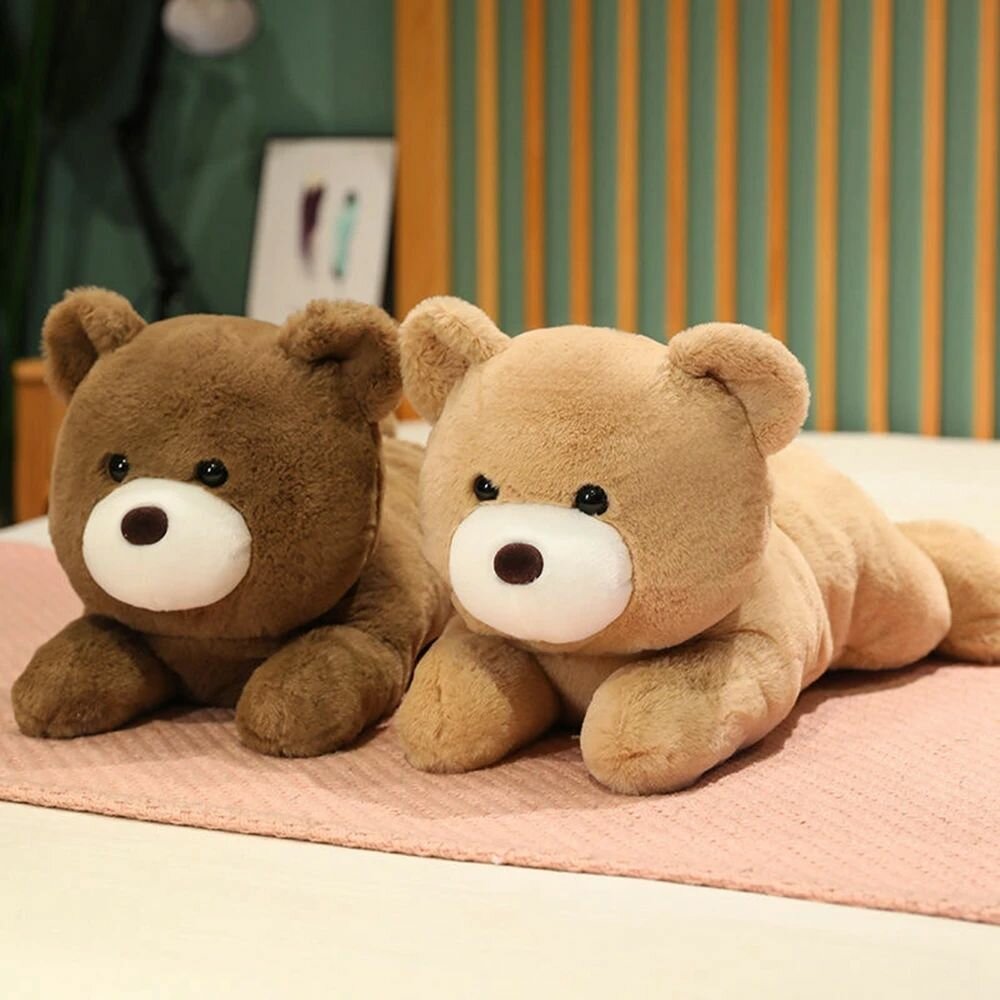 10 цен на Мягкая плюшевая игрушка-антистресс мишка-медведь лежит, кудрявый 45 см