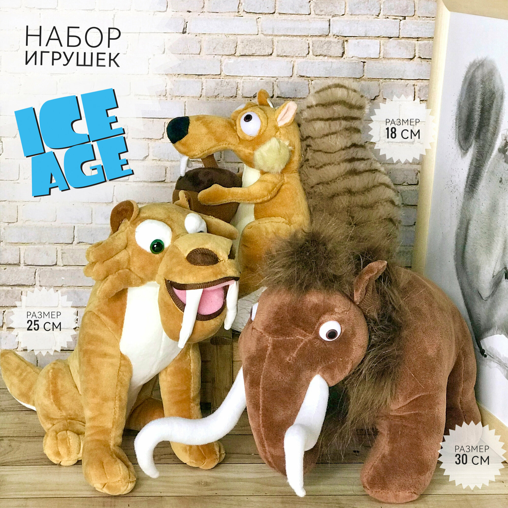 Мягкие игрушки Ледниковый Период тигр Диего, белка Скрэтти, мамонт Мэнни набор 2 100 ₽