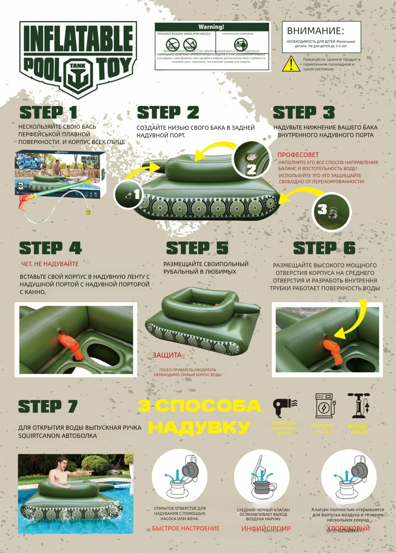 10 цен на Надувной водяной танк Splash Tank, плавательный круг, игровой водяной пистолет