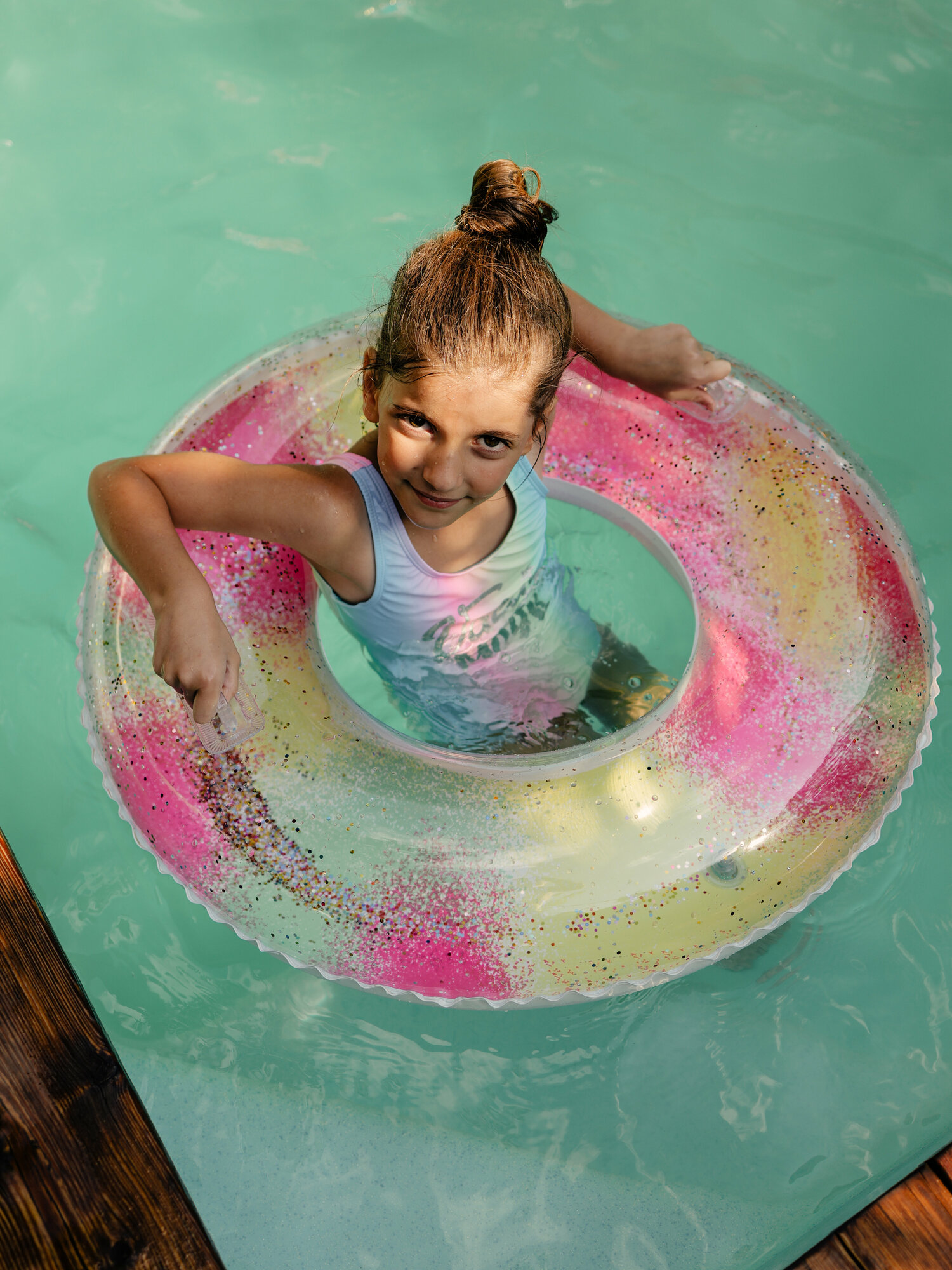 Отзывы на Круг для плавания цветной с блестками, с ручками, 84 см, 8-12 лет, Dans, арт. 959006