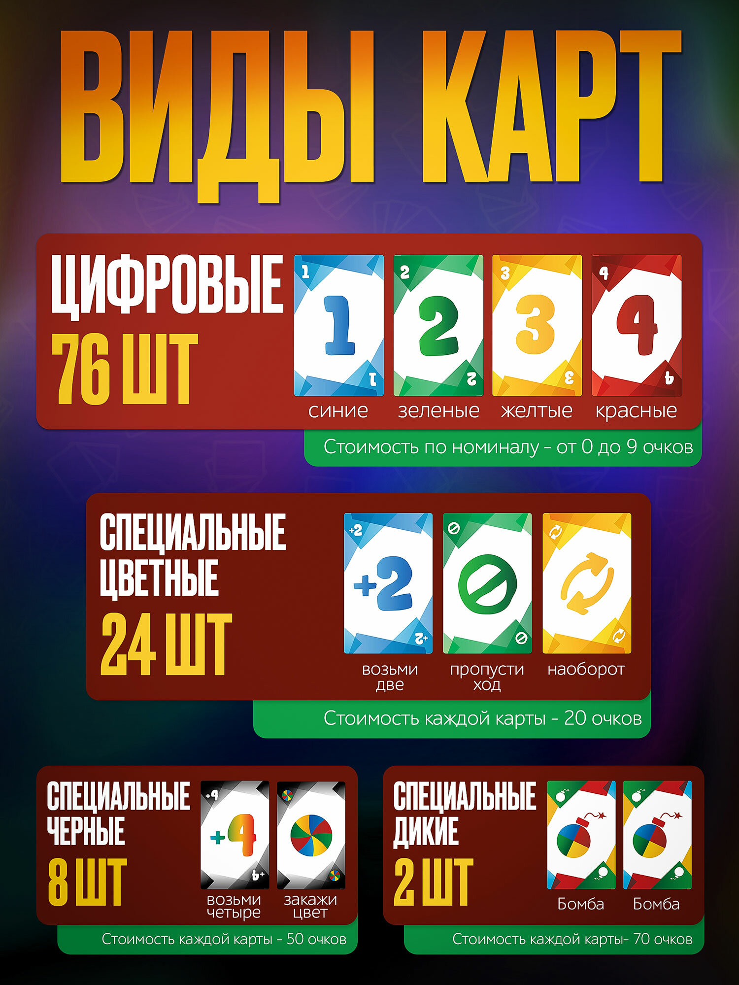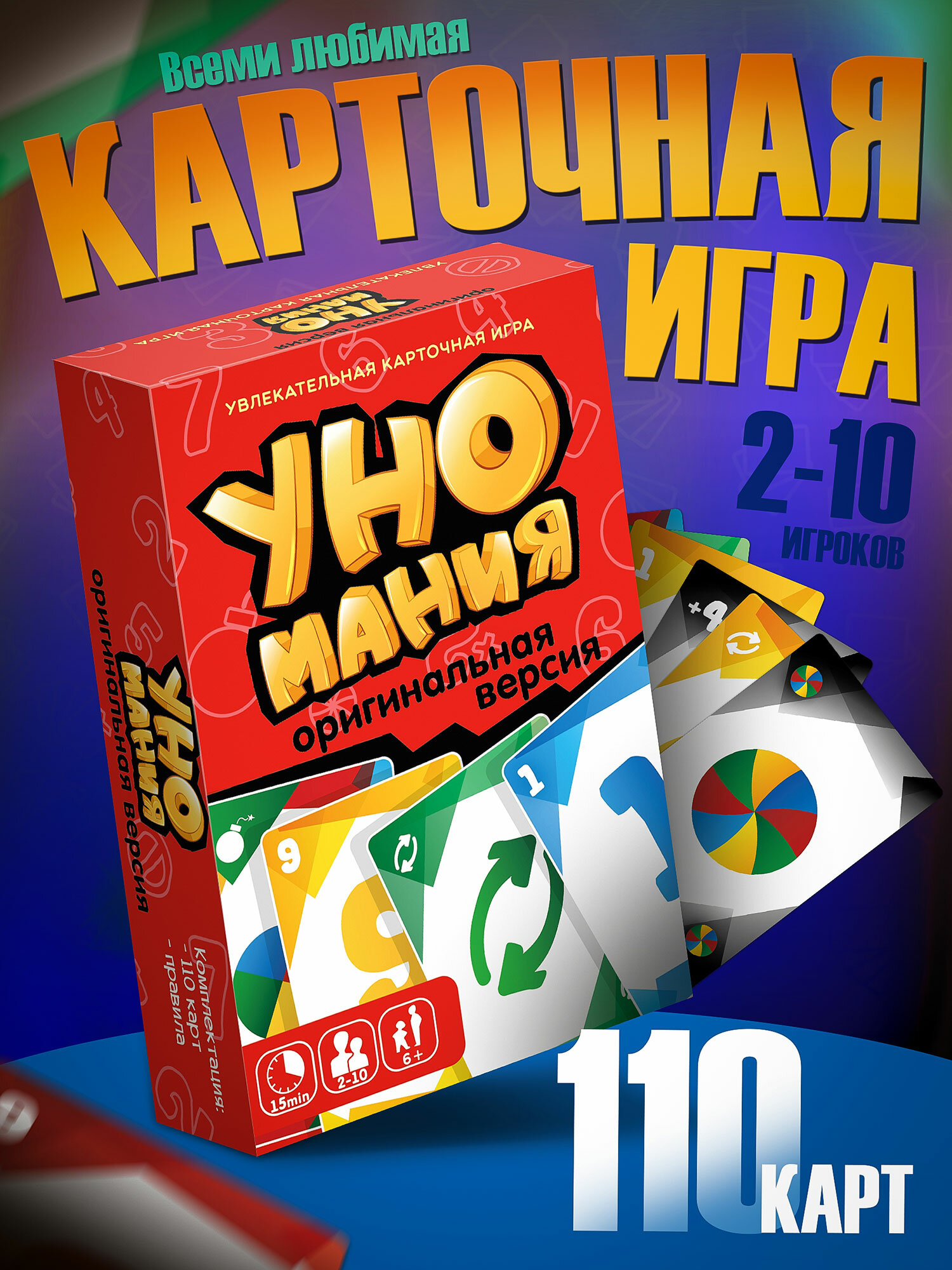 Настольная Игра "УНОмания. Оригинальная версия" для веселой компании, карточная, для 2-10 игроков, от 6 лет информация: