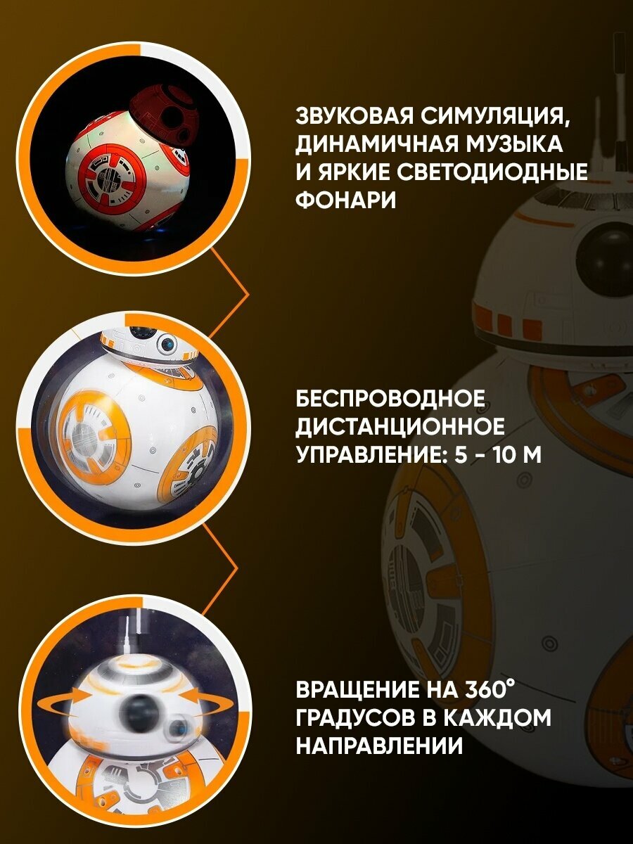 10 цен на Радиоуправляемый робот дроид BB-8 Звездные войны Star Wars пульт, свет, звук, usb 17 см