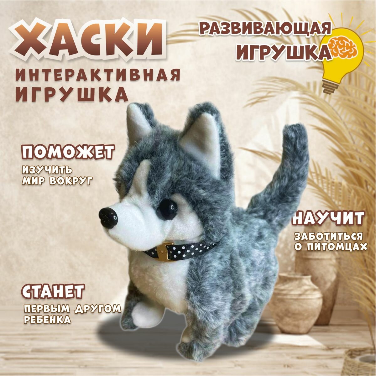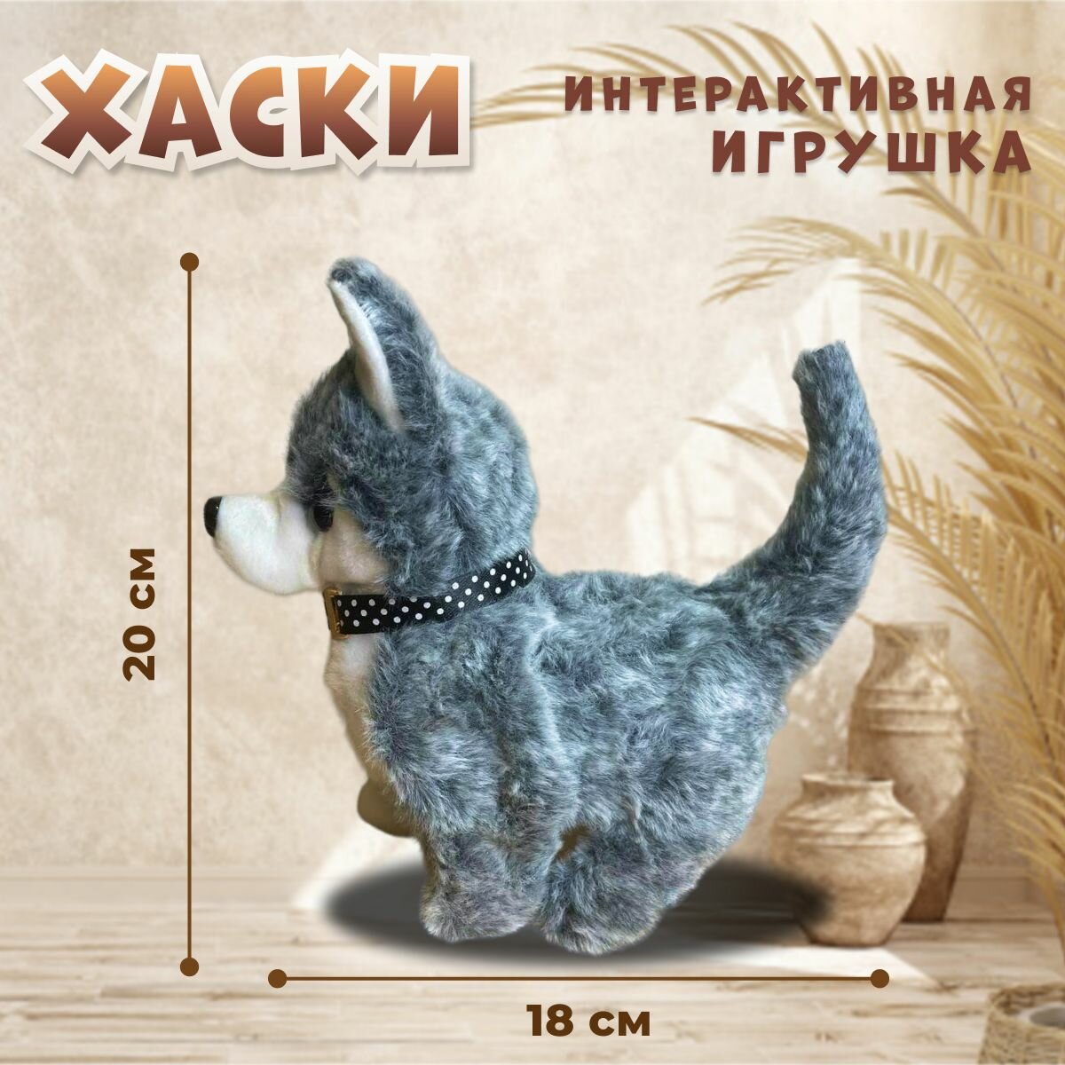 Интерактивная игрушка собака Хаски для детей, двигающийся волк на батарейках плюшевый, серый 659 ₽