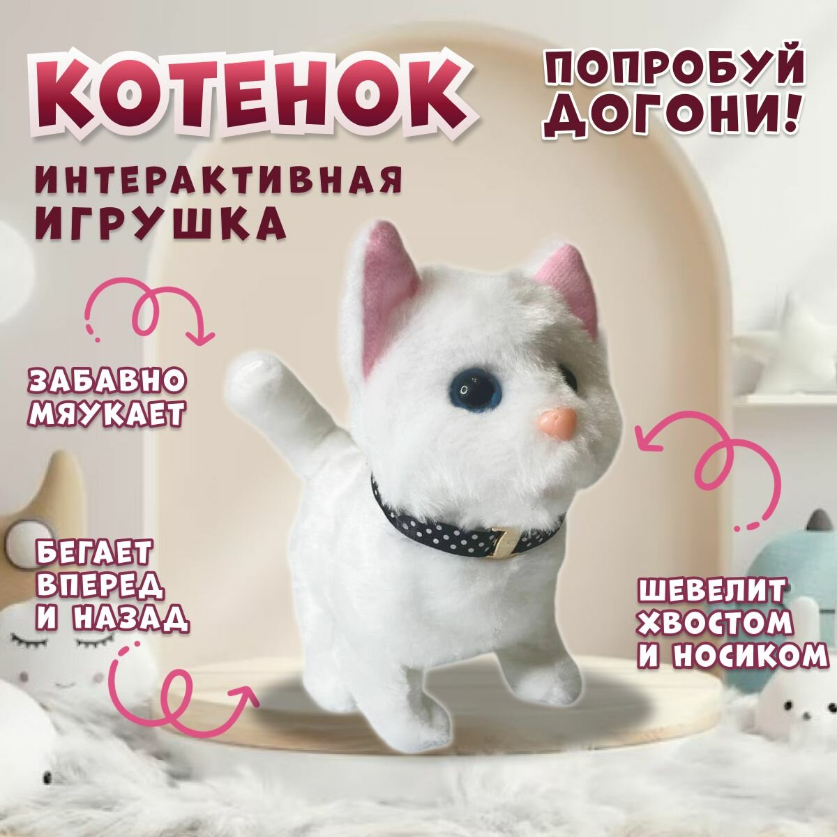 Отзывы на Интерактивная игрушка Кошка для детей, мяукающий котенок на батарейках плюшевый, белый