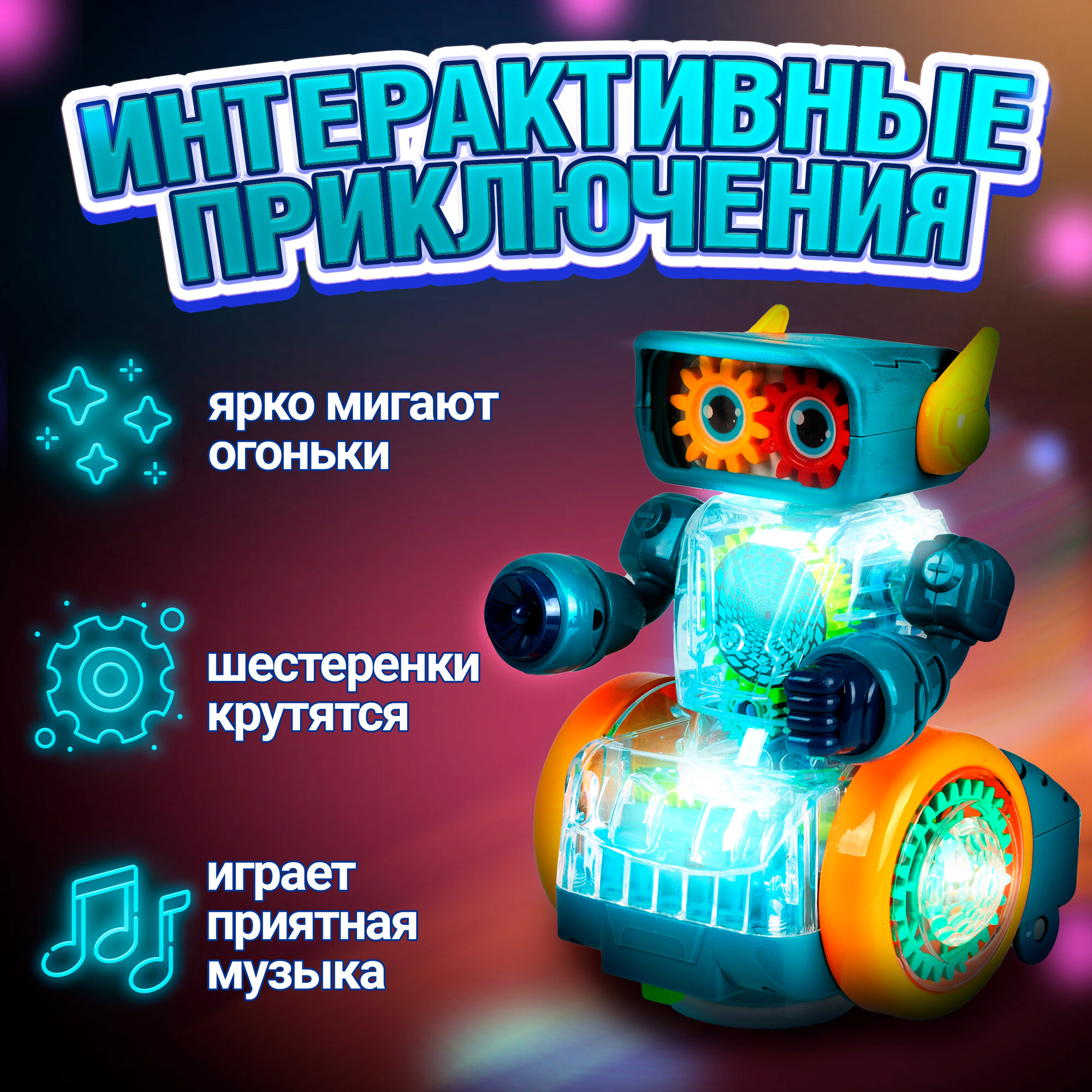 Игрушка прозрачная с шестеренками 1TOY Движок «Робот», со светом и звуком, 1 шт. в ассортименте 1шт информация: