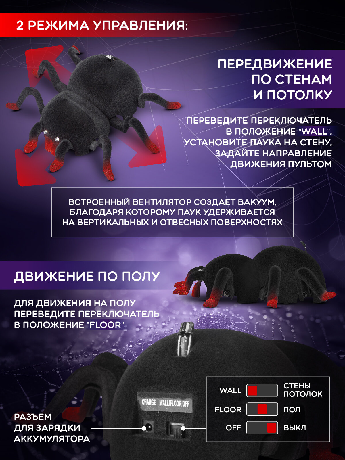 Отзывы на Радиоуправляемый Гигантский Паук ползает по стенам, потолку и полу, насекомое, на пульте управления, JB0212636