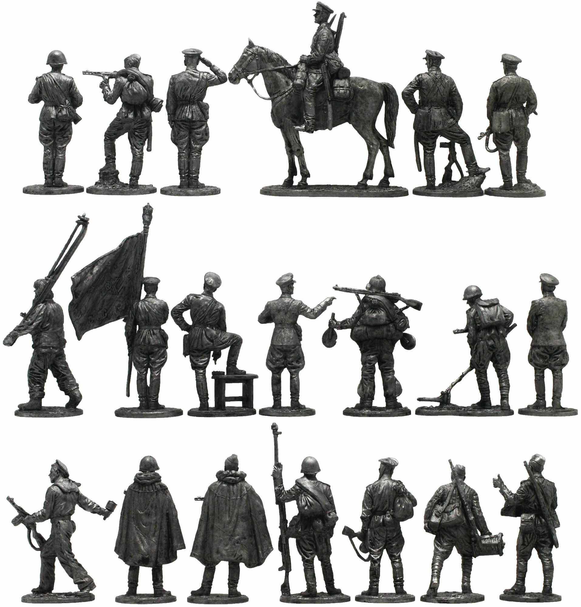 10 цен на "Вторая мировая война, Красная Армия" №20-3ЕК (20 н/к) набор оловянных солдатиков некрашеных в фанерной коробке