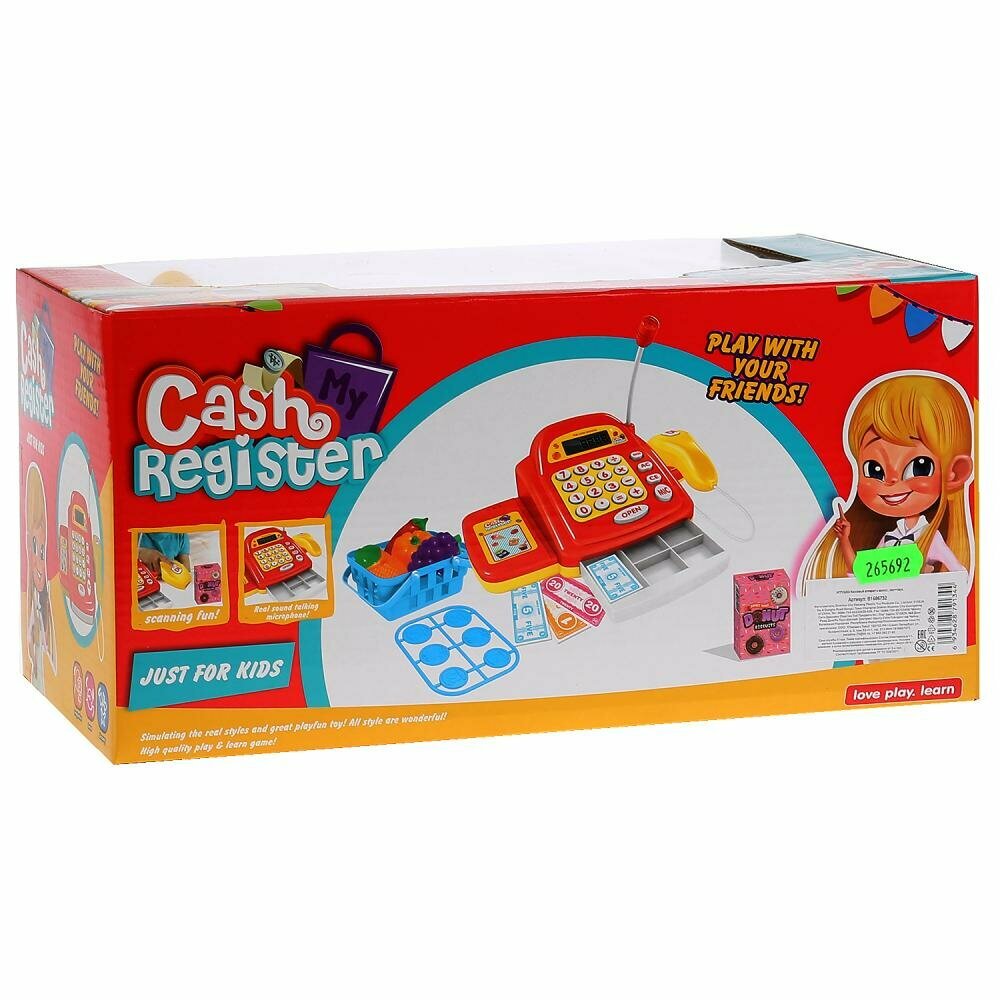 Характиристики этого товара не найдены!Отзывы на Игрушка Касса КОТ + продукты + аксессуары свет, звук (на батарейках) (картонная упаковка) Арт. KDL888-24