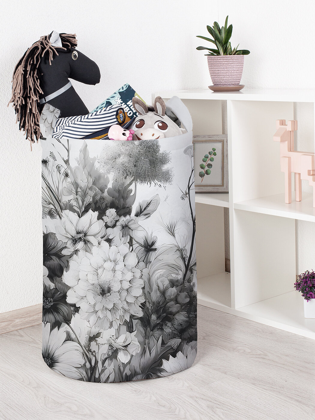 Корзина для хранения игрушек органайзер с ручками "Цветочки нежные" 75л, JoyArty