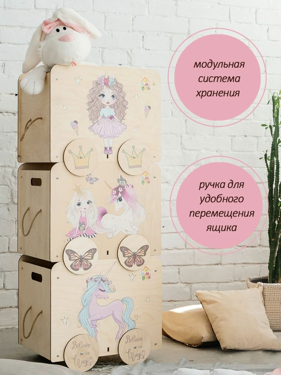Отзывы на Ящик для хранения игрушек деревянный на колесах Девочка с мороженым
