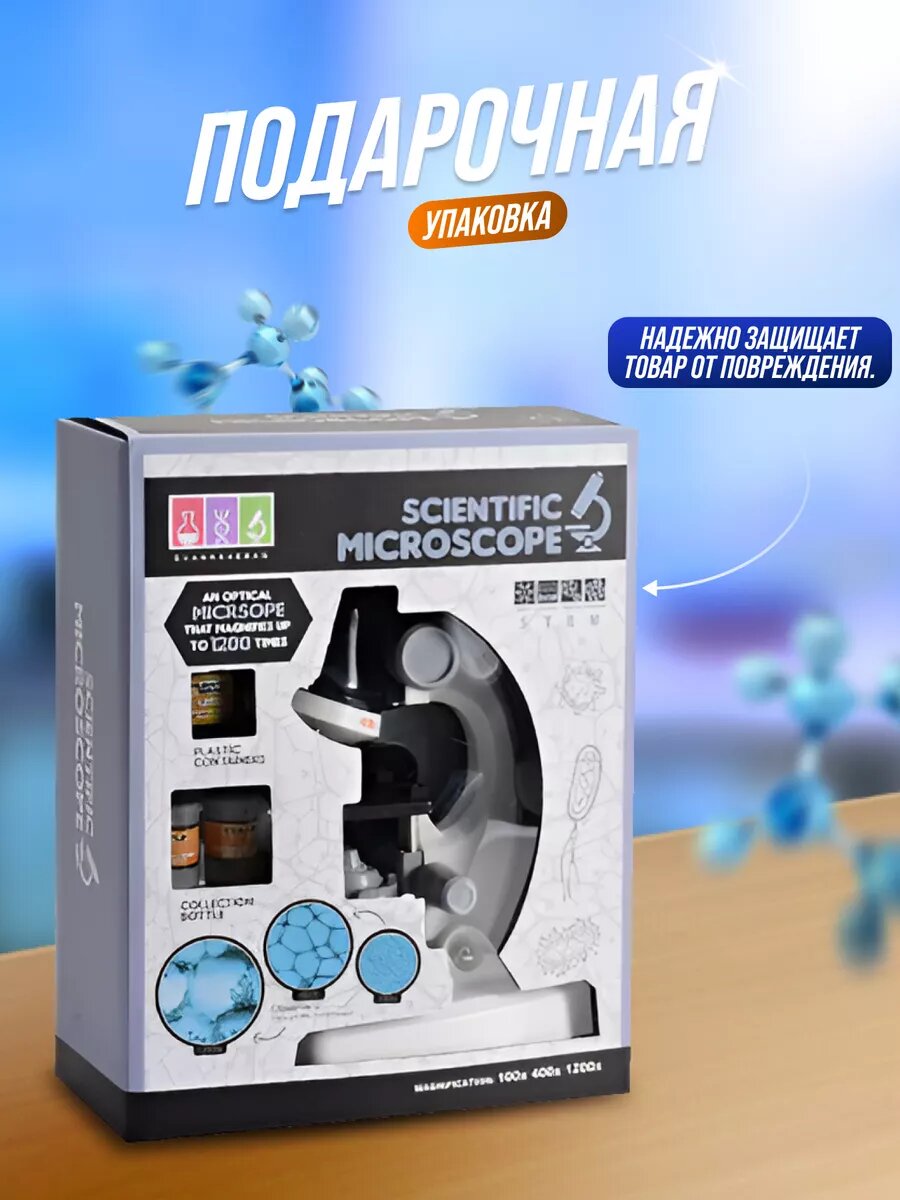 Микроскоп "Юный исследователь", кратность увеличения 1200х, 400х, 100х, с подсветкой