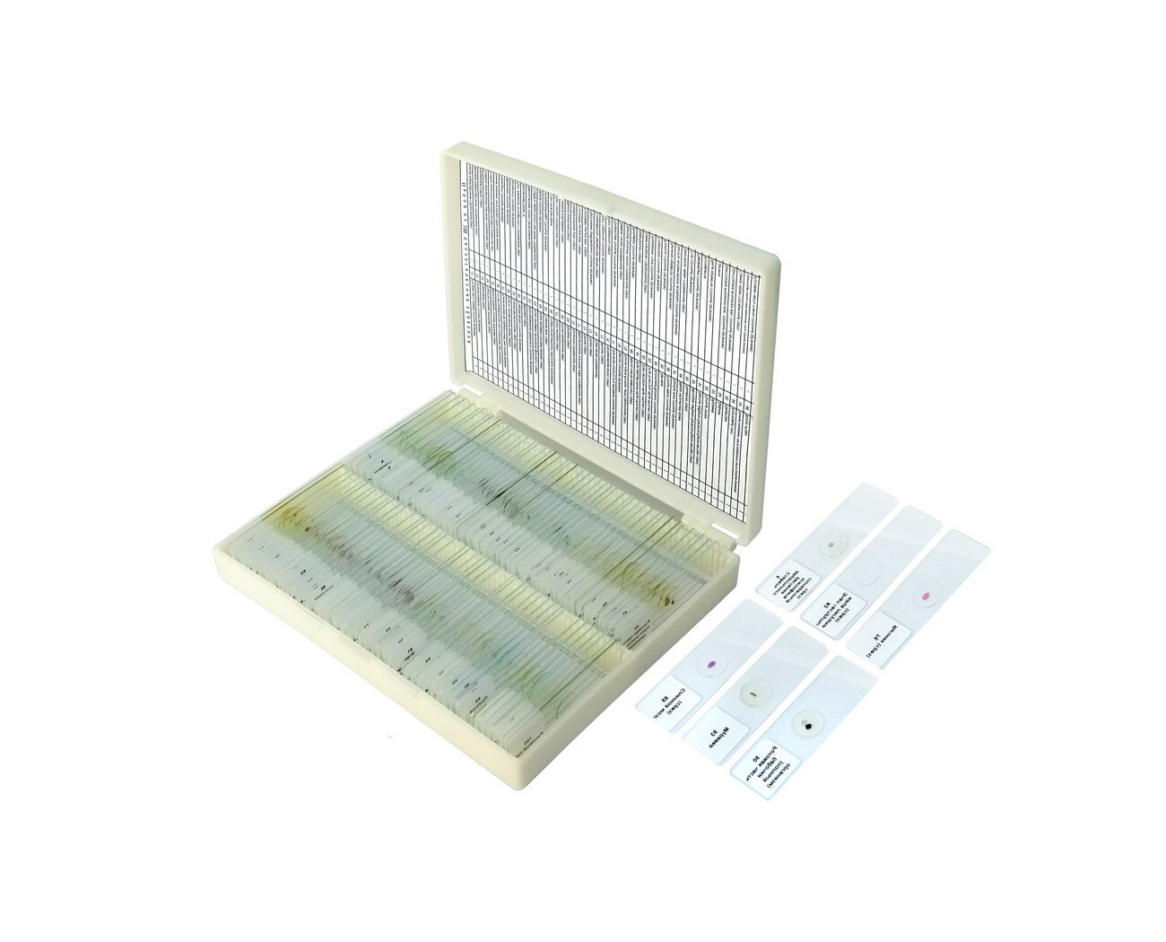 10 цен на Комплект микропрепаратов (100 шт) биология, анатомия и ботаника для микроскопа. Русский язык. Стекло. Препараты для микроскопа.